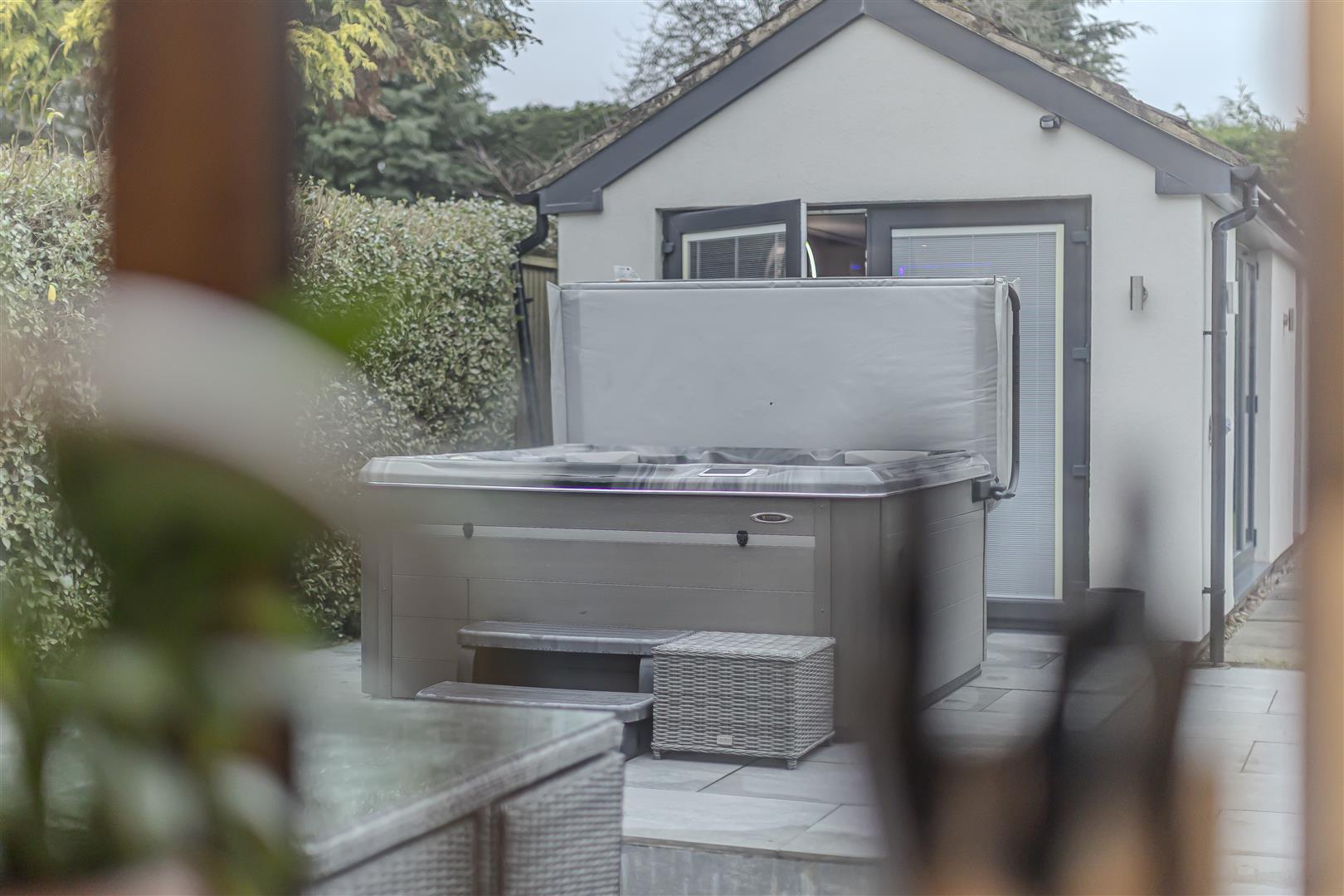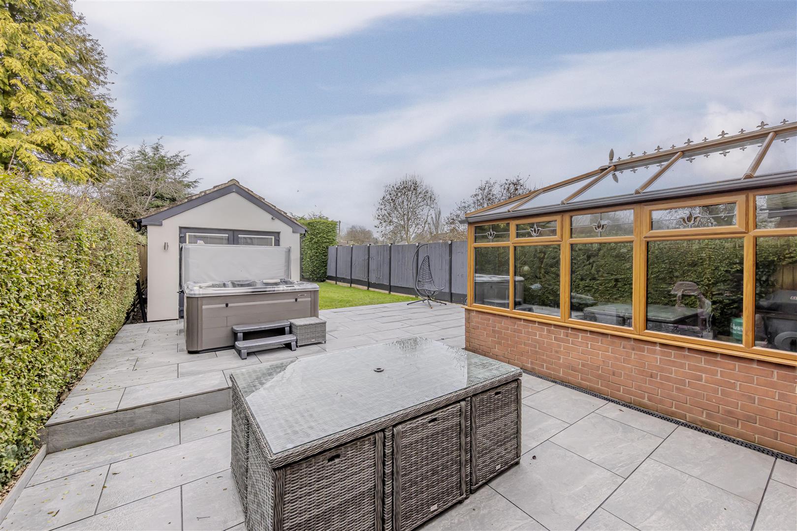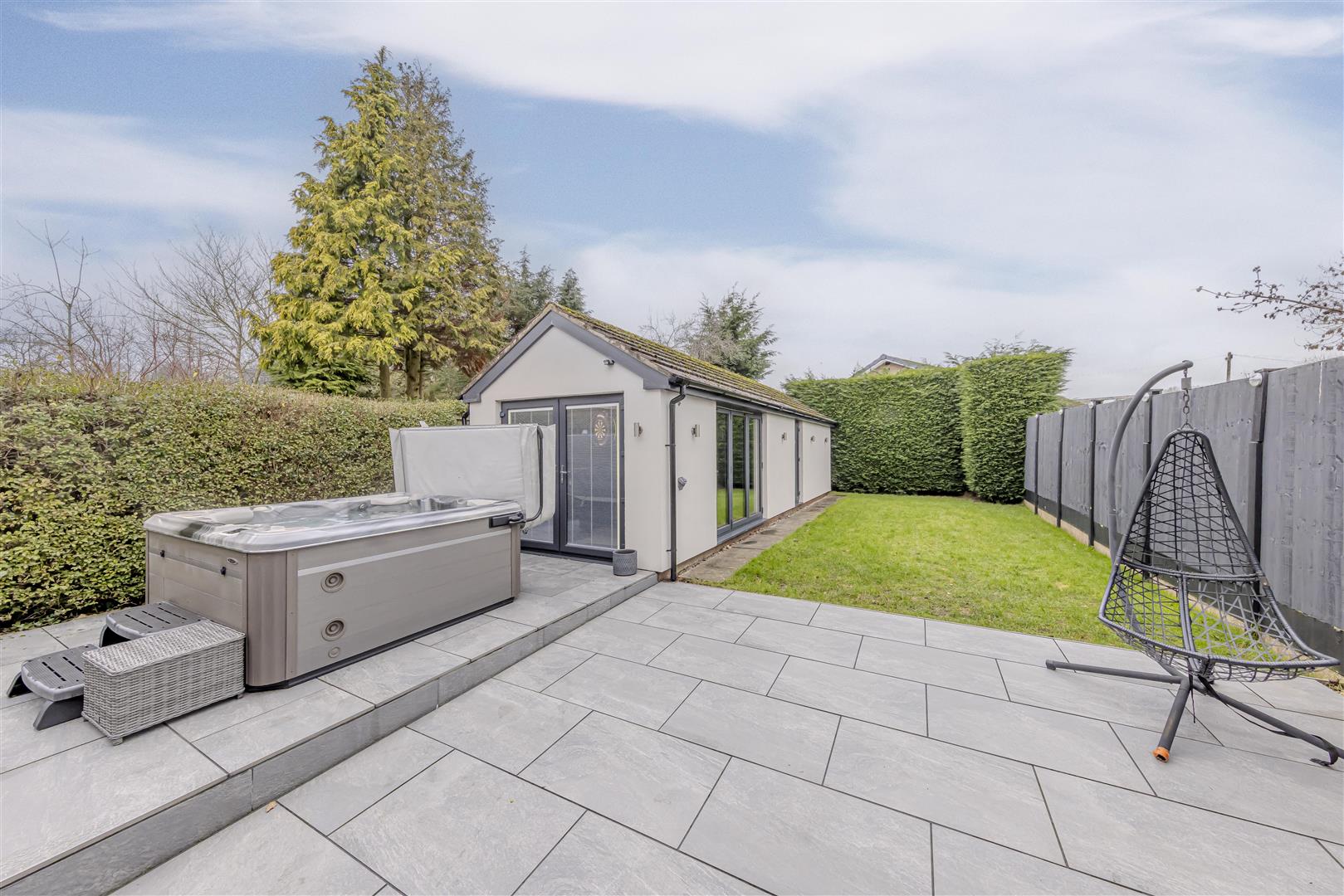 To the rear, the garden has been thoughtfully landscaped to create a low-maintenance yet highly usable outdoor space, featuring a paved patio ideal for entertaining and a neat lawned area beyond. A real standout feature is the detached garden room, which is superbly presented and currently arranged as a stylish bar and social space, making it perfect for entertaining, relaxing, or hosting friends and family. Behind the garden room, there is also a useful garden store with power and light. The garden is enclosed and well screened, offering a private and enjoyable setting throughout the year.