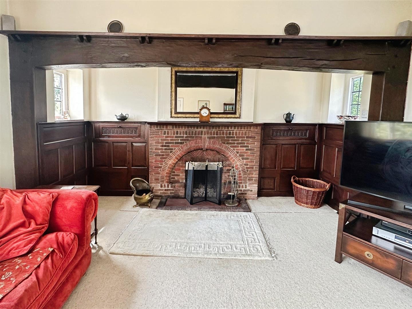 Carpet. Radiator. Inglenook fireplace housing and exposed brick open fire with wooden mantle. sealed unit double glazed window to the front aspect. Sealed unit double glazed bay window to the rear aspect. Exposed beams to the ceiling. Four wall lights.