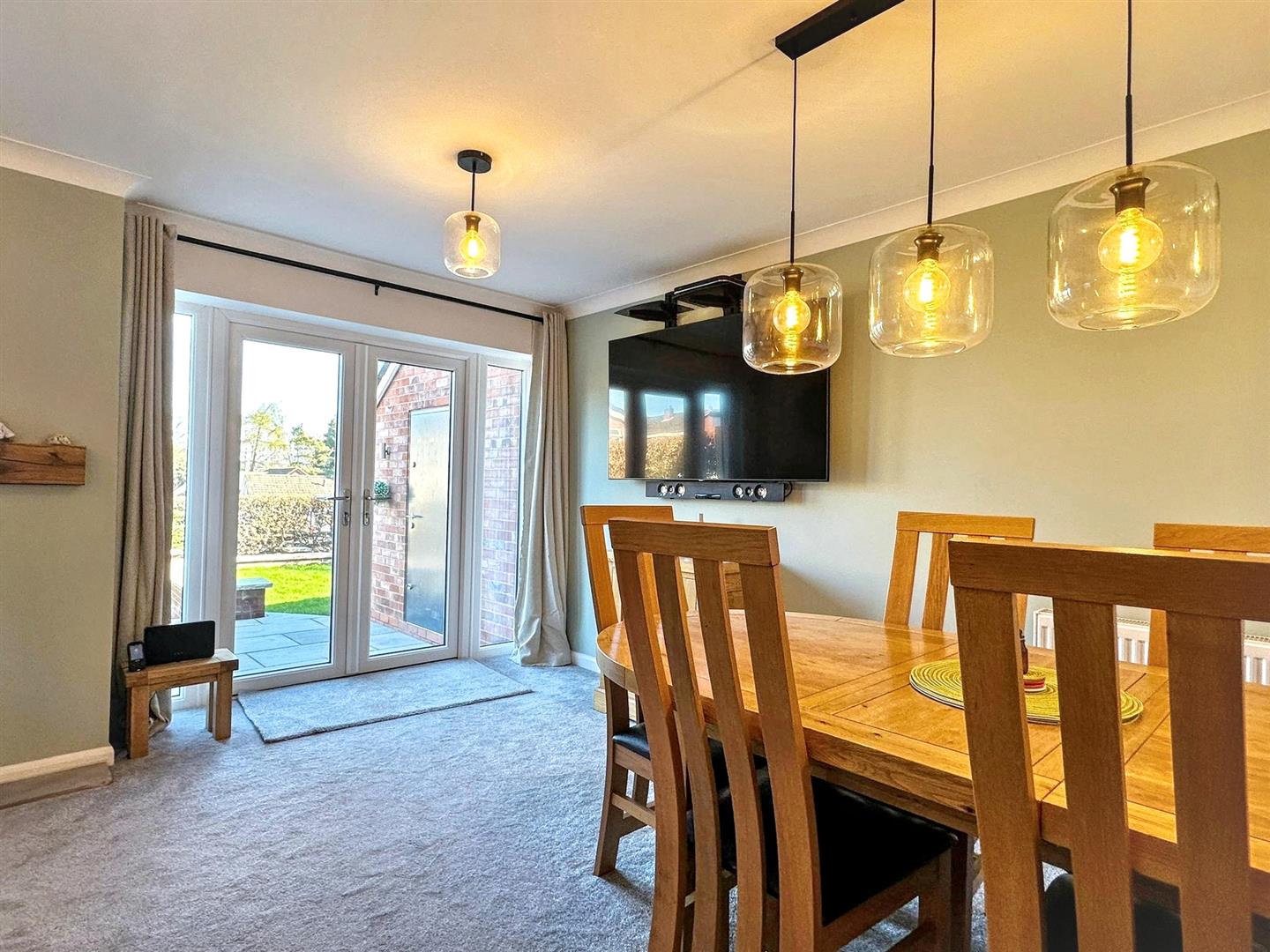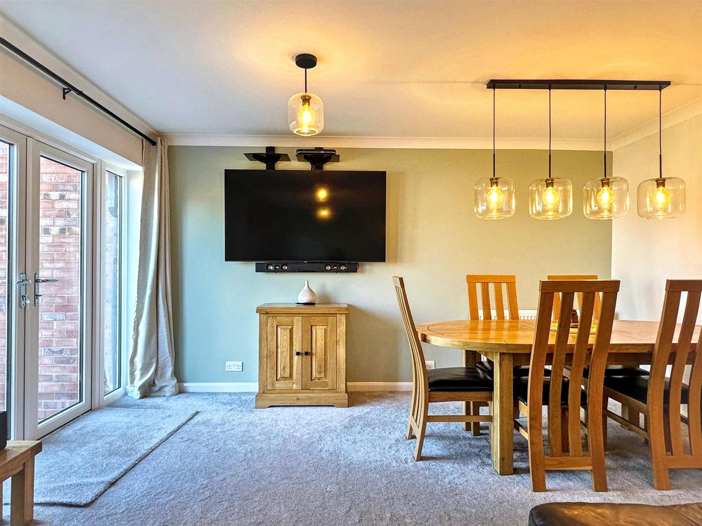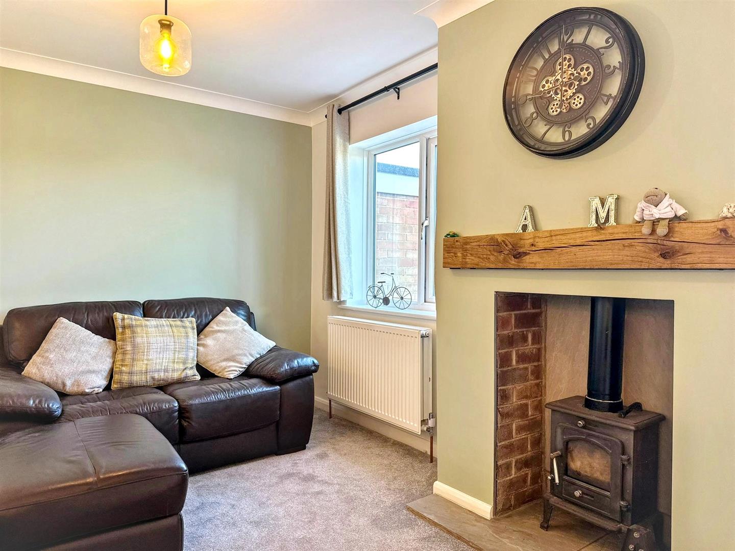 To the rear of the property, the lounge diner serves as a warm and inviting living space, featuring a charming log burner and double doors that open out onto the rear garden, creating a seamless indoor-outdoor flow.