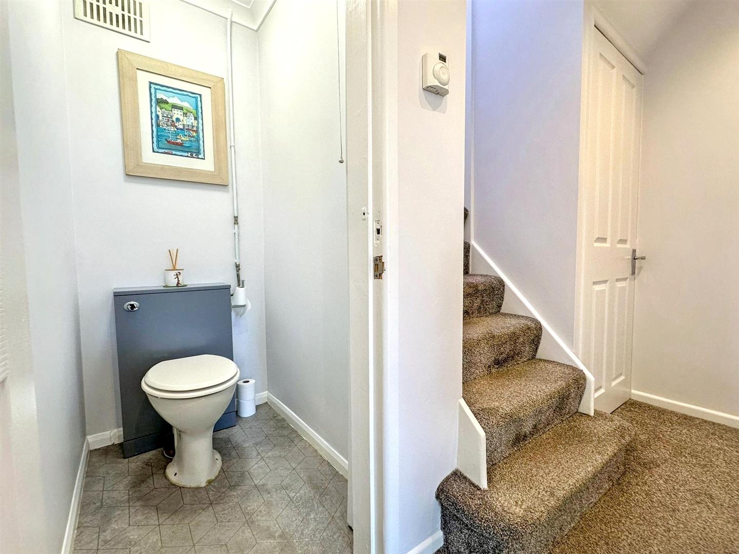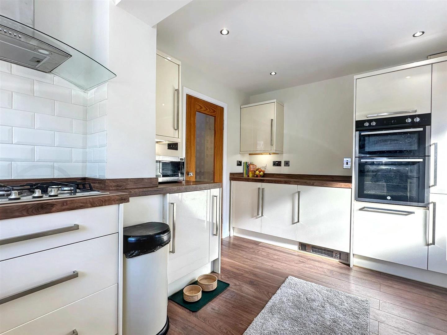 Fitted with a range of wall and base units with work surfaces over incorporating a double stainless steel sink unit, integrated dishwasher, gas hob and oven. Plumbing for washing machine. Space for fridge freezer. Wood effect flooring. Composite door to the side aspect. uPVC window to the front aspect. Inset Spotlights.