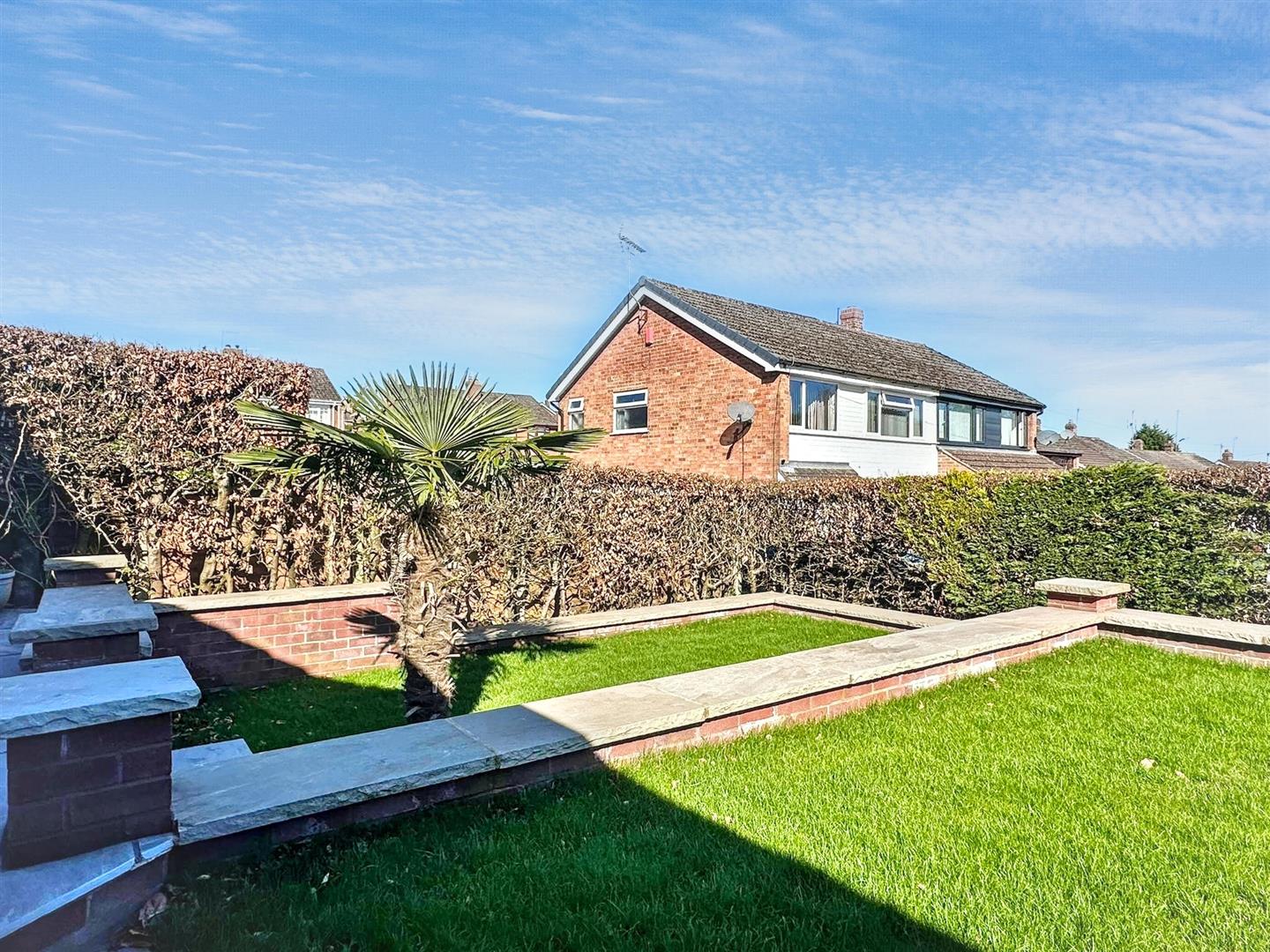 To the front of the property, there is a driveway providing off-road parking for multiple vehicles, along with access to the garage and a defined frontage bordered by hedging.
