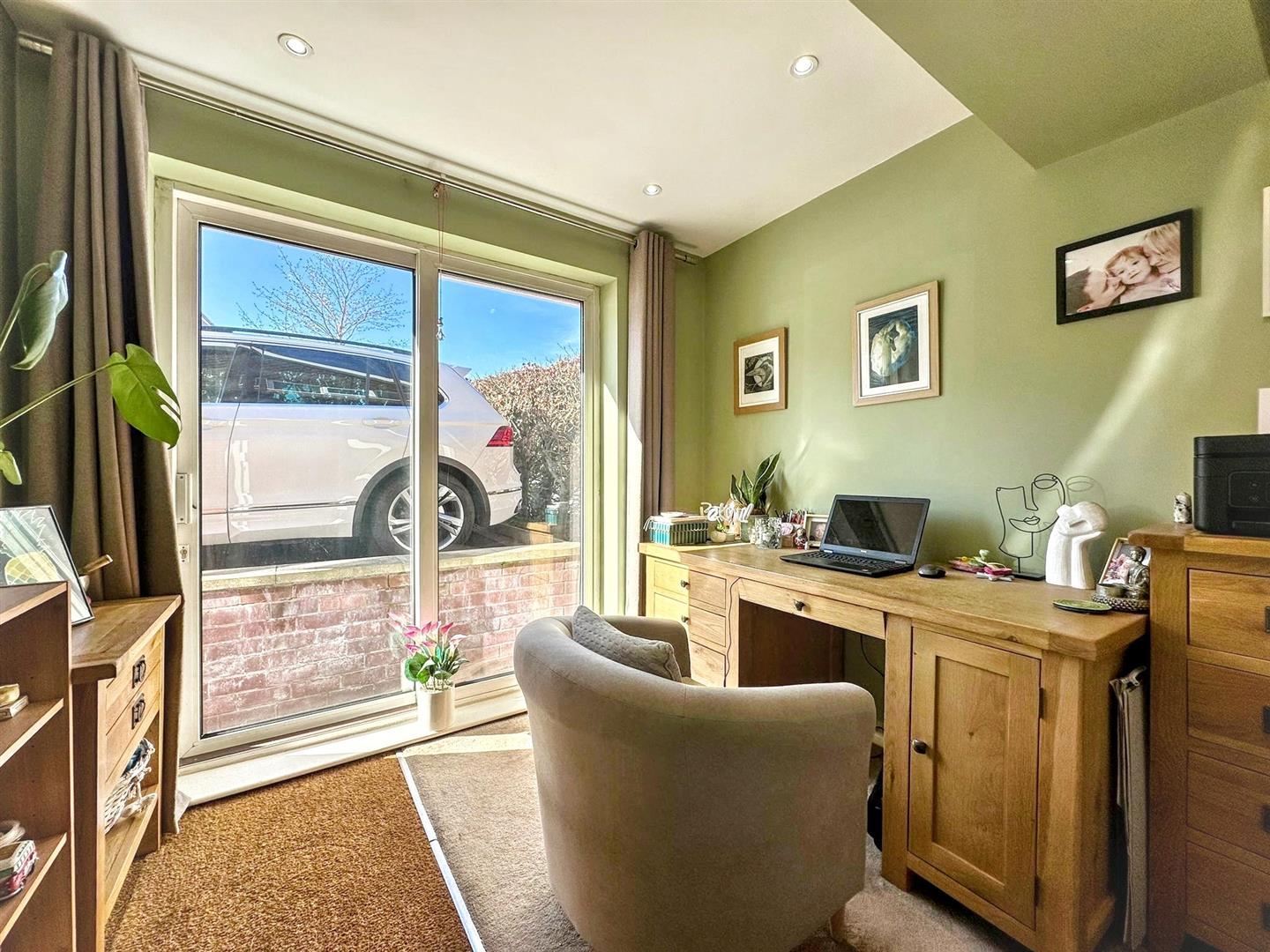 Leading through to the inner hall, you gain access to a versatile office/study, complete with sliding doors opening onto the front driveway—ideal for those working from home or seeking a flexible reception space. The inner hall also provides access to a convenient downstairs WC.
