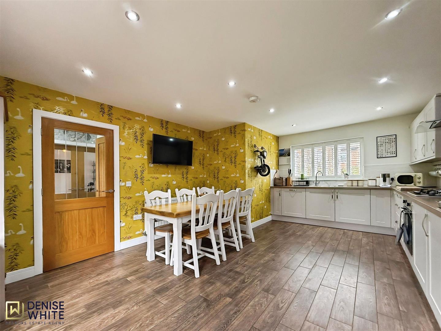 The property welcomes you with a spacious entrance hallway, complete with a downstairs cloakroom. To the right, you’ll find a generous living room filled with natural light from duel aspect windows and a cosy log burner with brick surround. To the rear lies a stylish and well-equipped kitchen/dining area, perfect for family life and entertaining with French doors onto the rear garden.