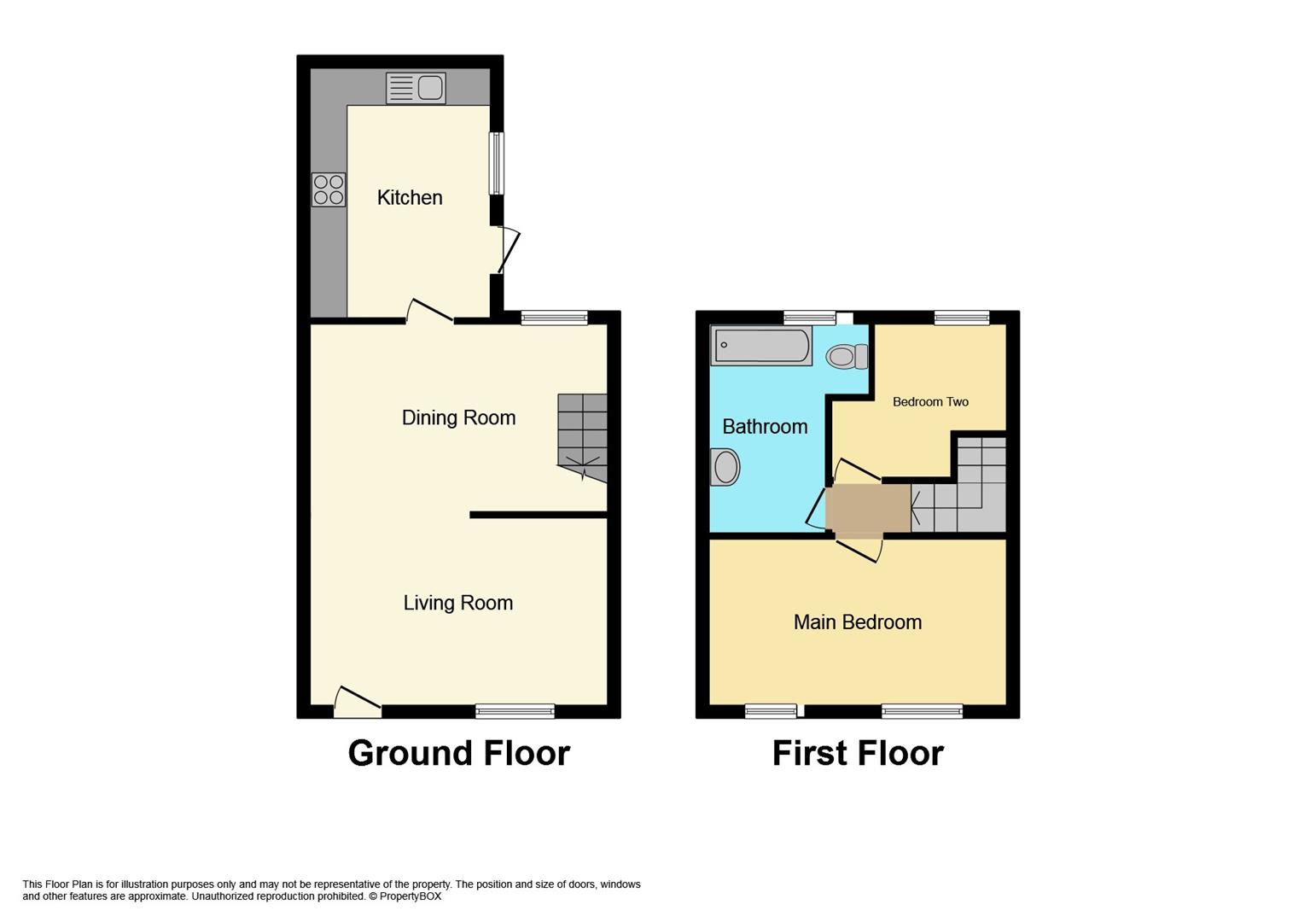 The ground floor features an open-plan lounge and dining area with space to relax and entertain, flowing through to a compact yet functional kitchen with fitted units. Upstairs, there are two bedrooms, along with a lovely modern bathroom. Outside, the property benefits from a small rear yard area. Benefitting from uPVC double Glazing throughout and Gas Central Heating with a combination boiler.