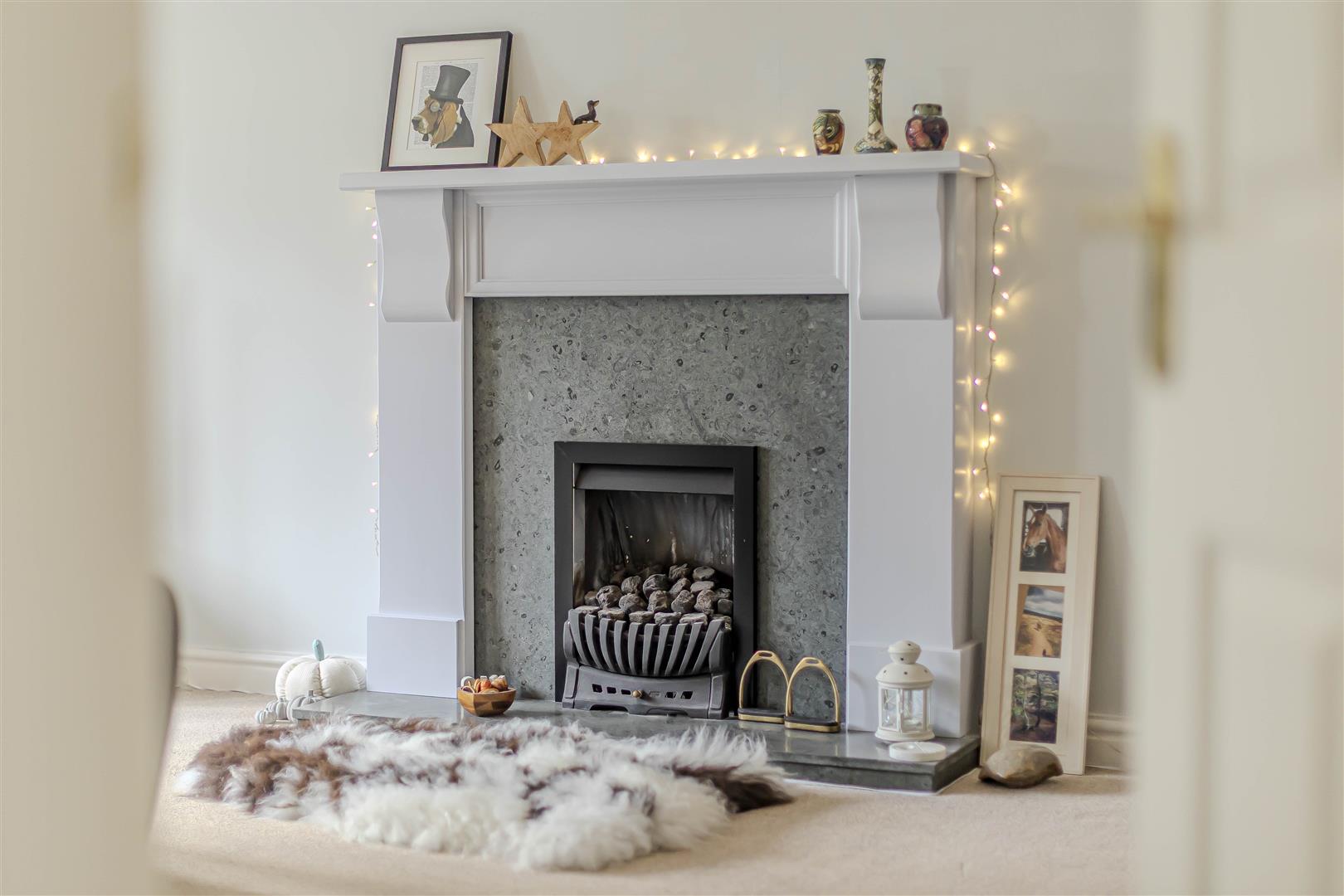 Carpet. Radiator. Coal effect gas fire set on a granite hearth an inset with ornate wooden surround. Coving to the ceiling. uPVC window to the front aspect. Ceiling light.