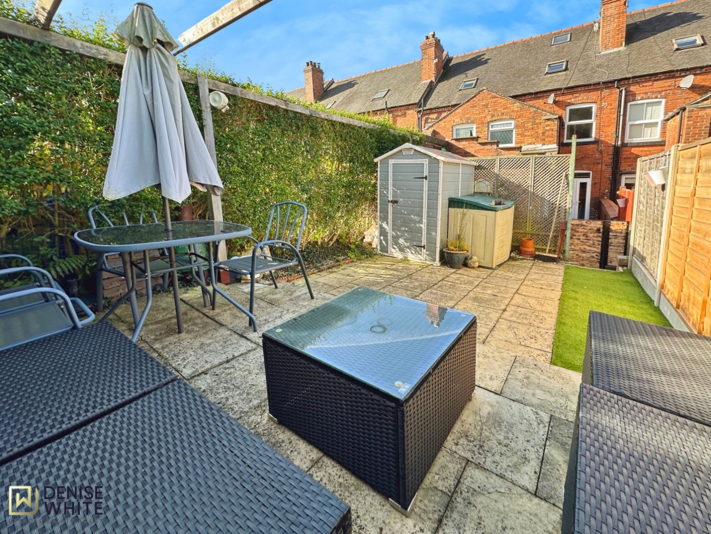 To the rear of the property there is a private, paved courtyard, which in turn leads to a further private garden which offers a paved patio seating area and space for a garden shed.
