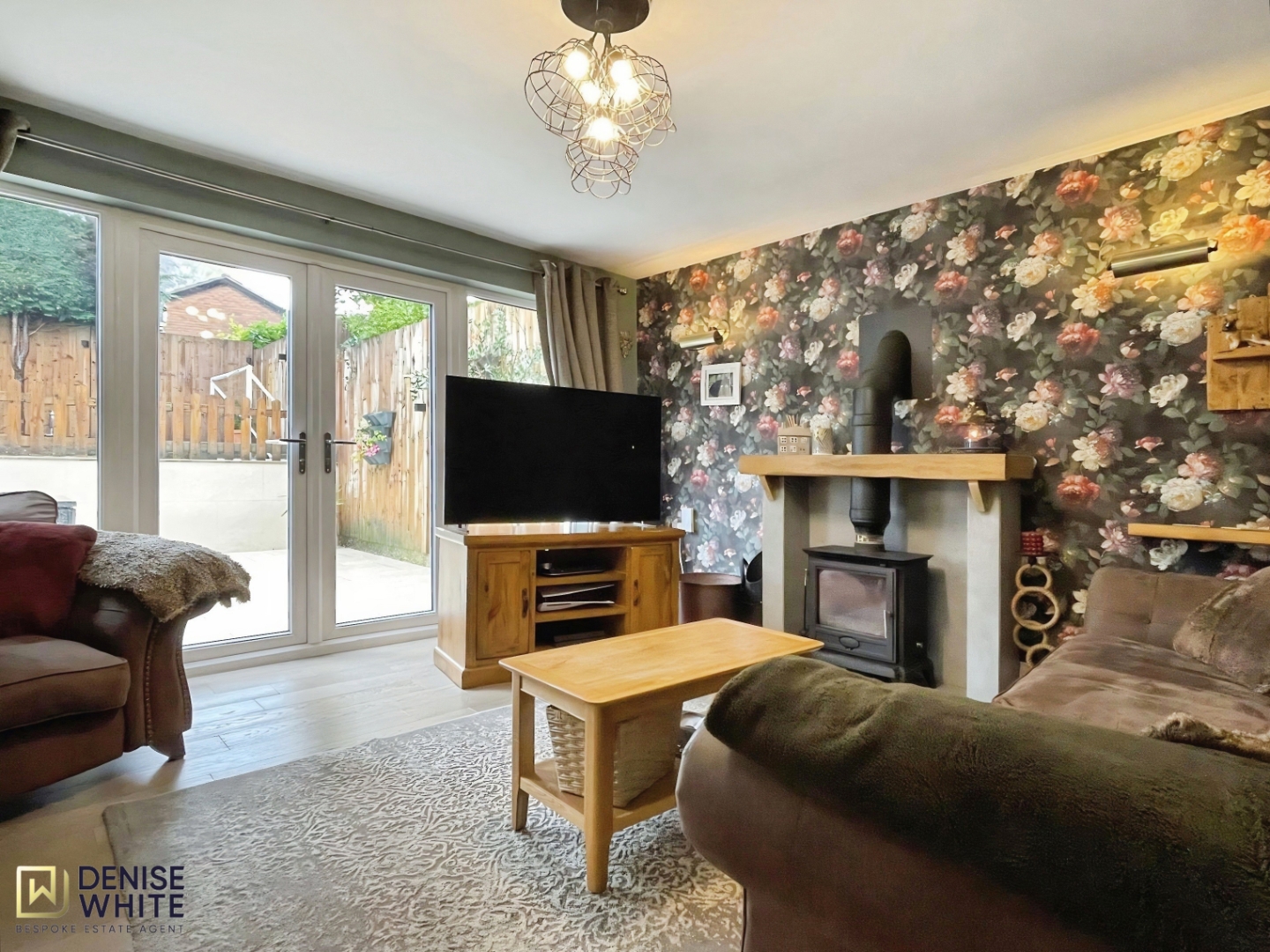 - Cosy living room with log burner and French doors to the garden