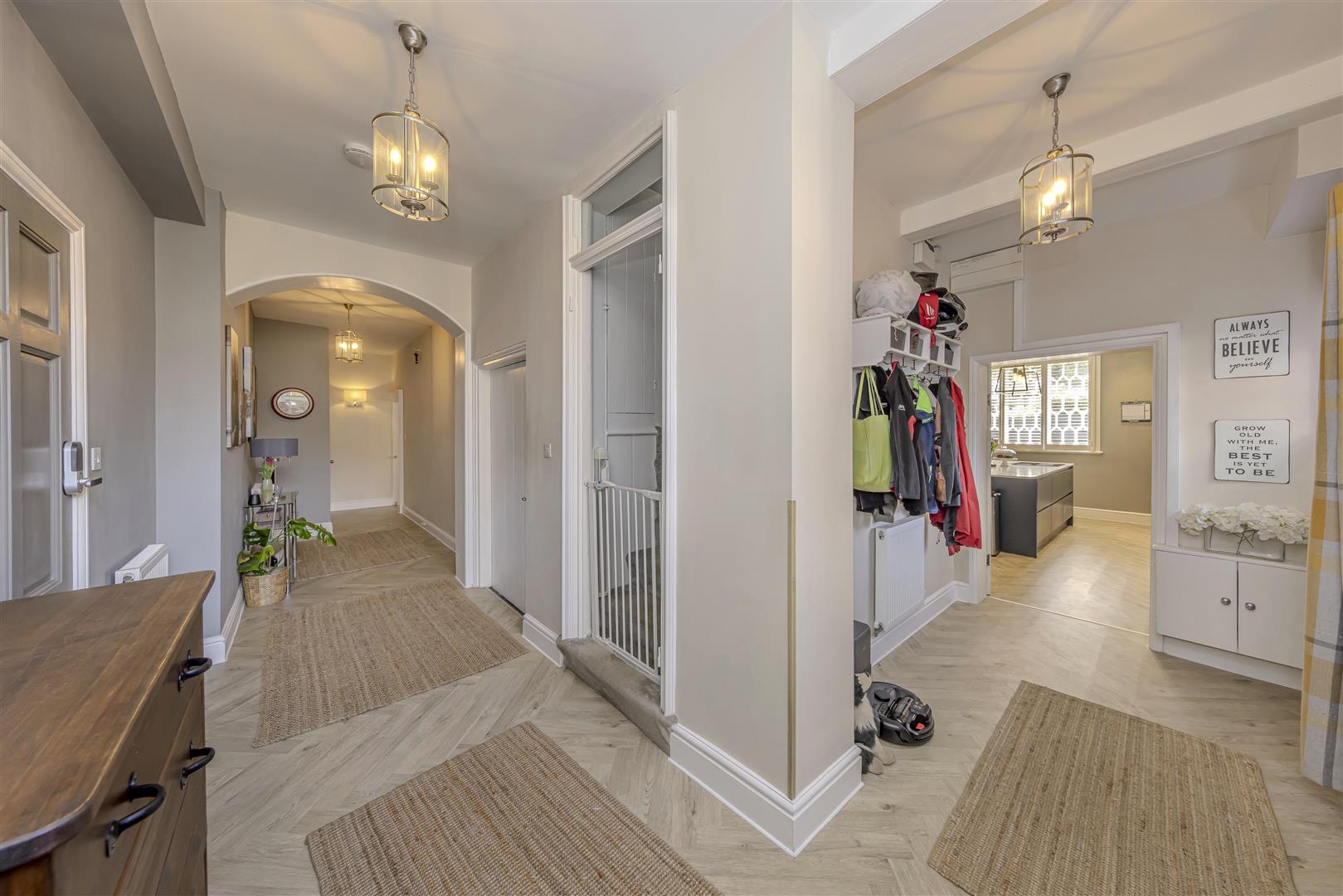 Internal entrance door to the front aspect which leads to the communal entrance hallway. Herringbone style vinyl flooring. Three radiators. Two original Windows to the side aspect with built-in shutters. Stairs leading to the first floor and down to the cellar. Three ceiling lights. One wall light. Wooden door to the side aspect which leads to the rear garden. Doors leading into:-