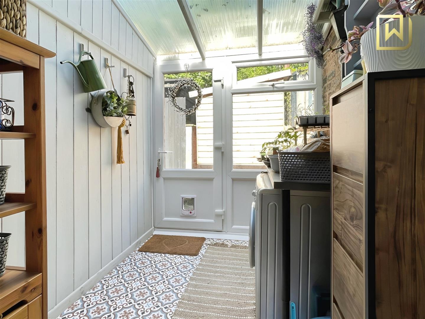 Vinyl flooring. UPVC door and window to the rear aspect. Wall light. Plumbing for washing machine.