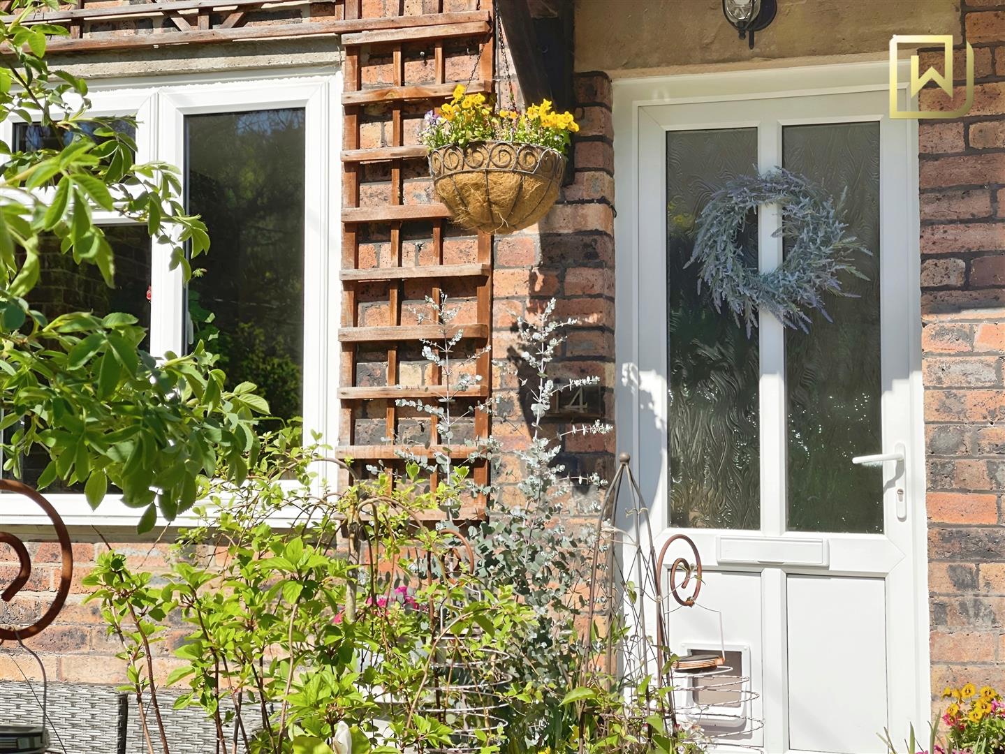 Outside, the property boasts a beautifully maintained front garden with a paved pathway leading past a manicured lawn and stone patio—an ideal spot to unwind and enjoy the leafy surroundings. The initial area of the front garden offers potential for conversion into off-road parking, subject to appropriate permission.