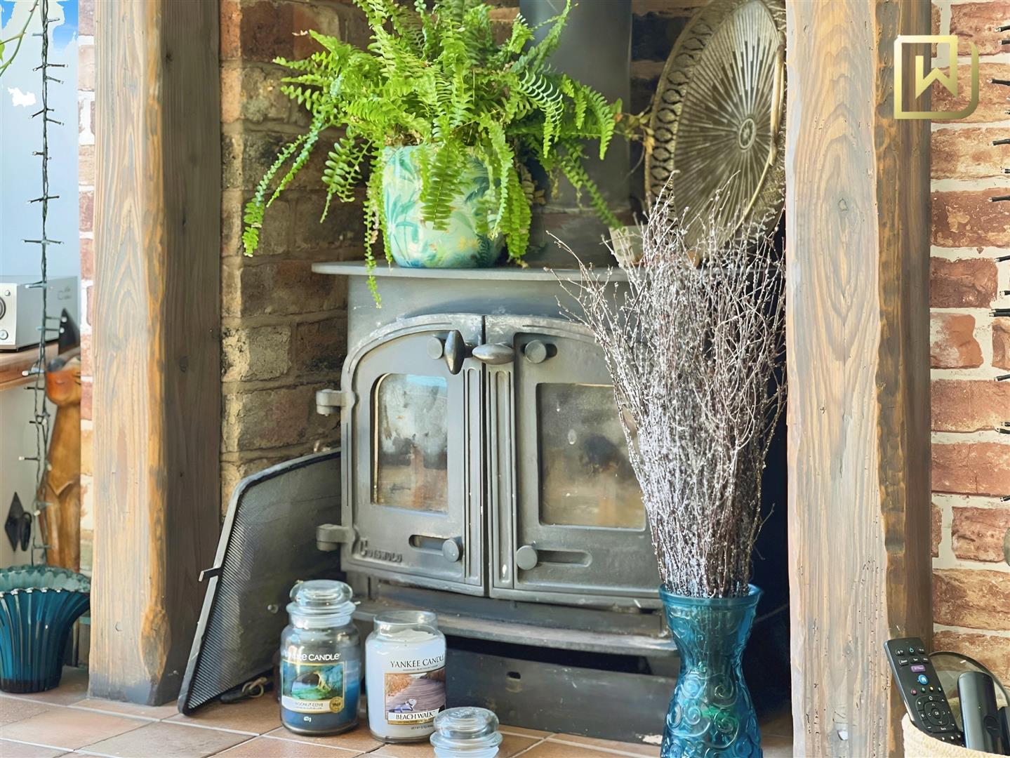 The ground floor offers open-plan living, combining a welcoming lounge and dining area centred around a cosy log burner—ideal for relaxing evenings or entertaining guests in a warm, characterful setting. The well-appointed kitchen is complemented by a practical utility area to the rear, offering additional storage and convenience.