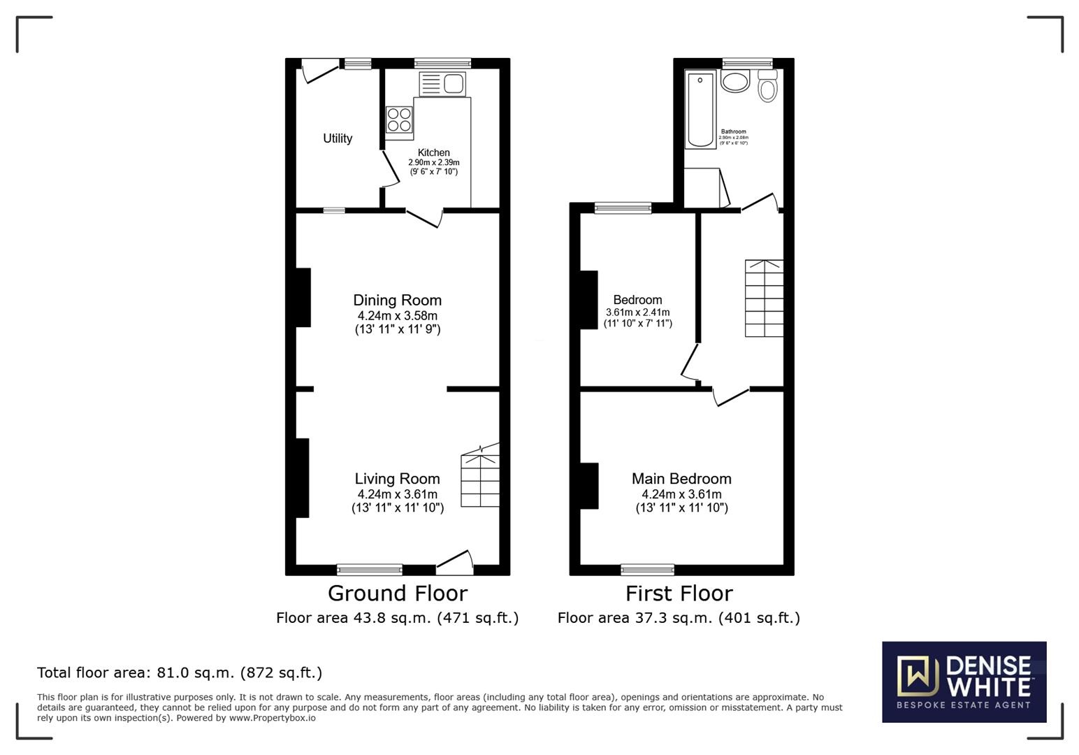 Please note that all areas, measurements and distances given in these particulars are approximate and rounded. The text, photographs and floor plans are for general guidance only. Denise White Estate Agents has not tested any services, appliances or specific fittings — prospective purchasers are advised to inspect the property themselves. All fixtures, fittings and furniture not specifically itemised within these particulars are deemed removable by the vendor.
