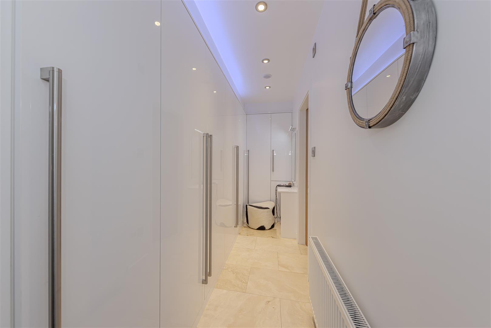 Tiled flooring with underfloor heating. Partially tiled walls. Composite door with frosted glass panel to the front aspect. Built in storage solutions. Inset Spotlight. Access into: –