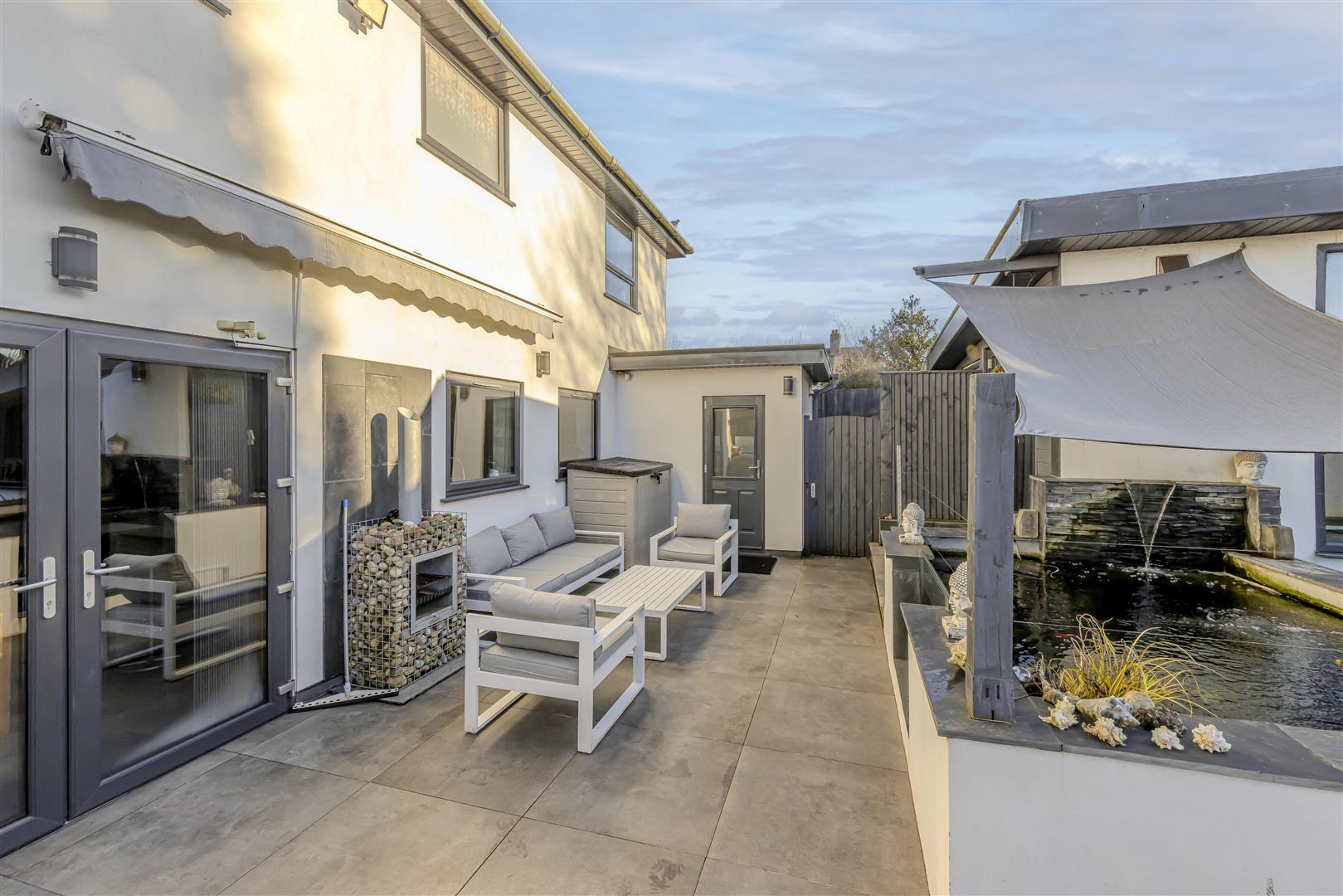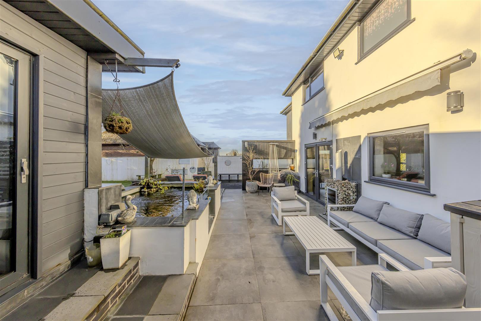 Externally, the property continues to exceed expectations. A beautifully tiled patio leads onto decking, alongside a raised pond with glass panel. To the western side, there is a dedicated hot tub area. The property also benefits from a substantial pool room with bi-fold doors opening directly onto the patio.