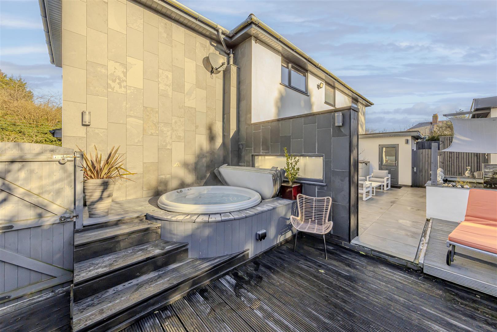 - Extensive outdoor entertaining spaces including tiled patio, decking, hot tub area and south-facing gardens