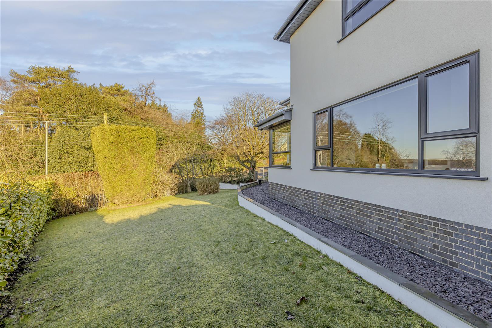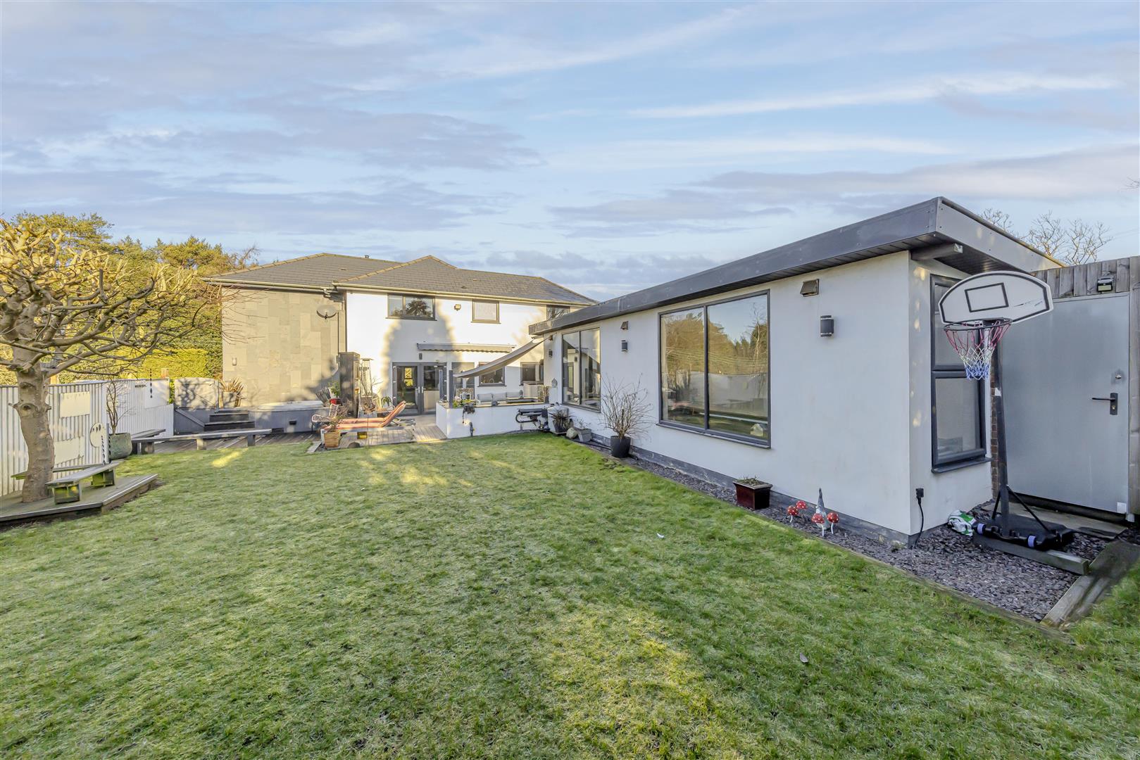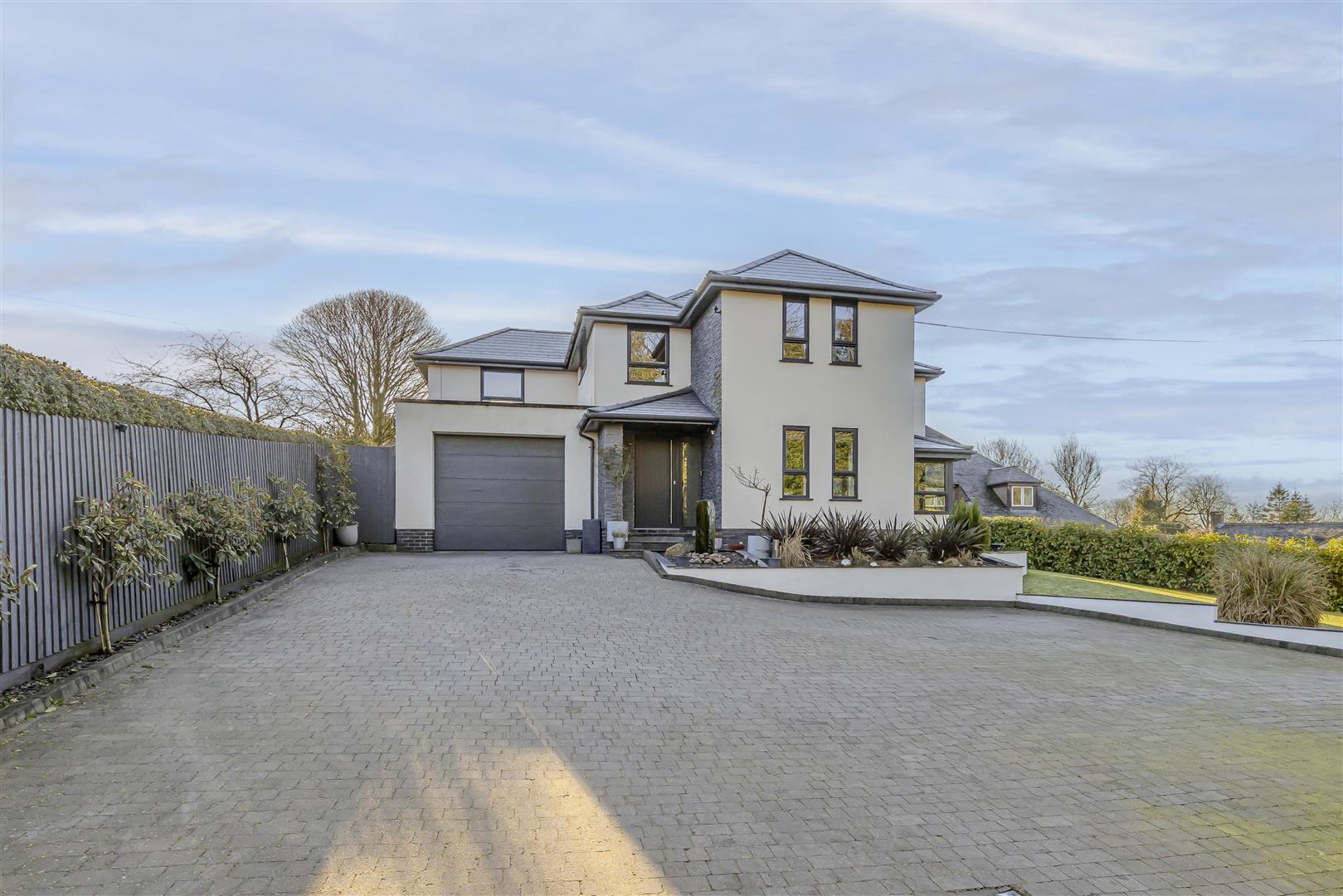 This show-stopping residence is approached via remote-controlled gated access, opening onto a generous driveway and integral garage. The striking exterior immediately creates a lasting impression and sits proudly within a substantial plot. Lawned gardens wrap around the front of the home, complemented by mature borders and a tranquil water feature.