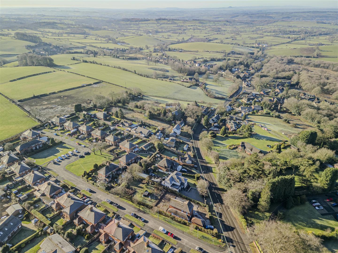 A double-sided gas fireplace cleverly divides the sitting area, creating distinct yet connected spaces across the ground floor, all unified by the home’s high-quality finish. Two large side-aspect windows perfectly frame the stunning views towards Shropshire.