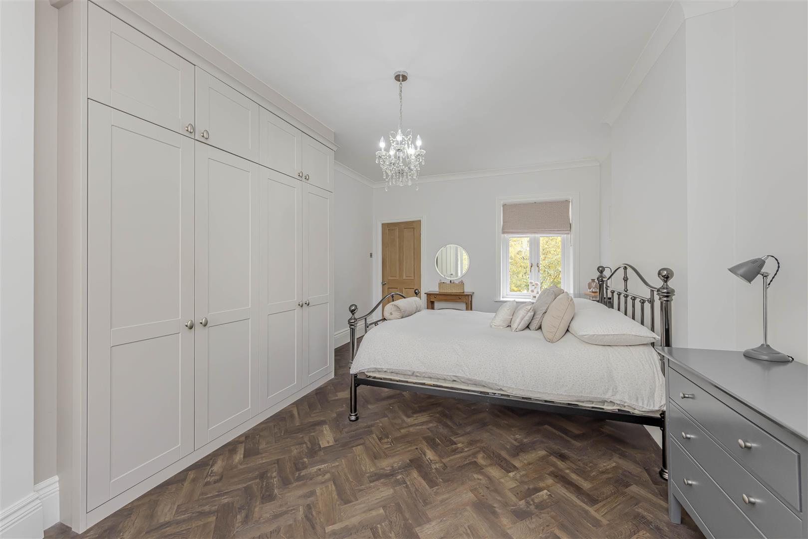 The first floor hosts three generous double bedrooms, all featuring bespoke fitted wardrobes. The two front-facing bedrooms benefit from bespoke shutters, enhancing both privacy and period elegance. A beautiful feature window lights the stairwell to the second floor, where a fourth double bedroom and a large family bathroom await. The bathroom is well-appointed with a separate bath and walk-in shower.