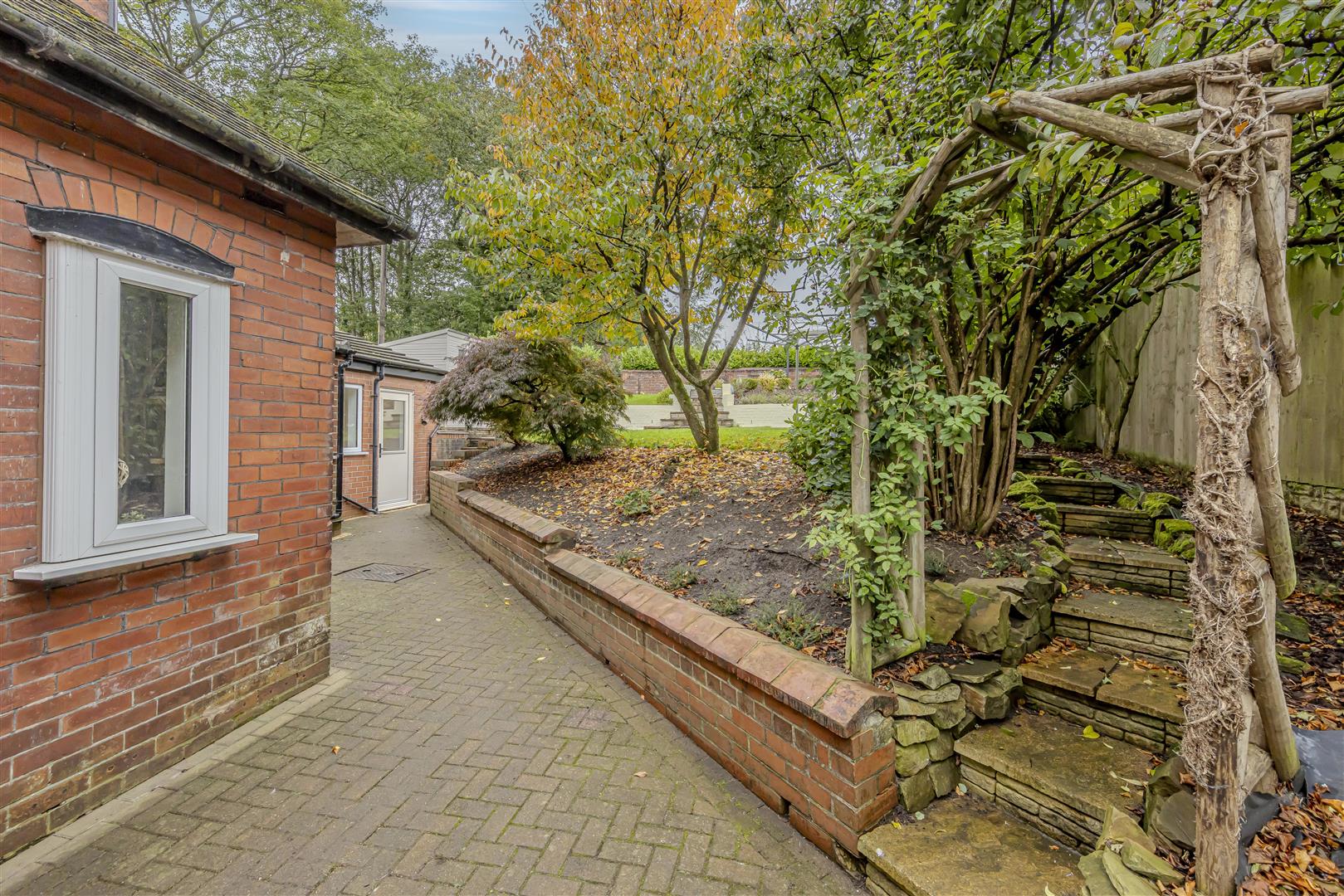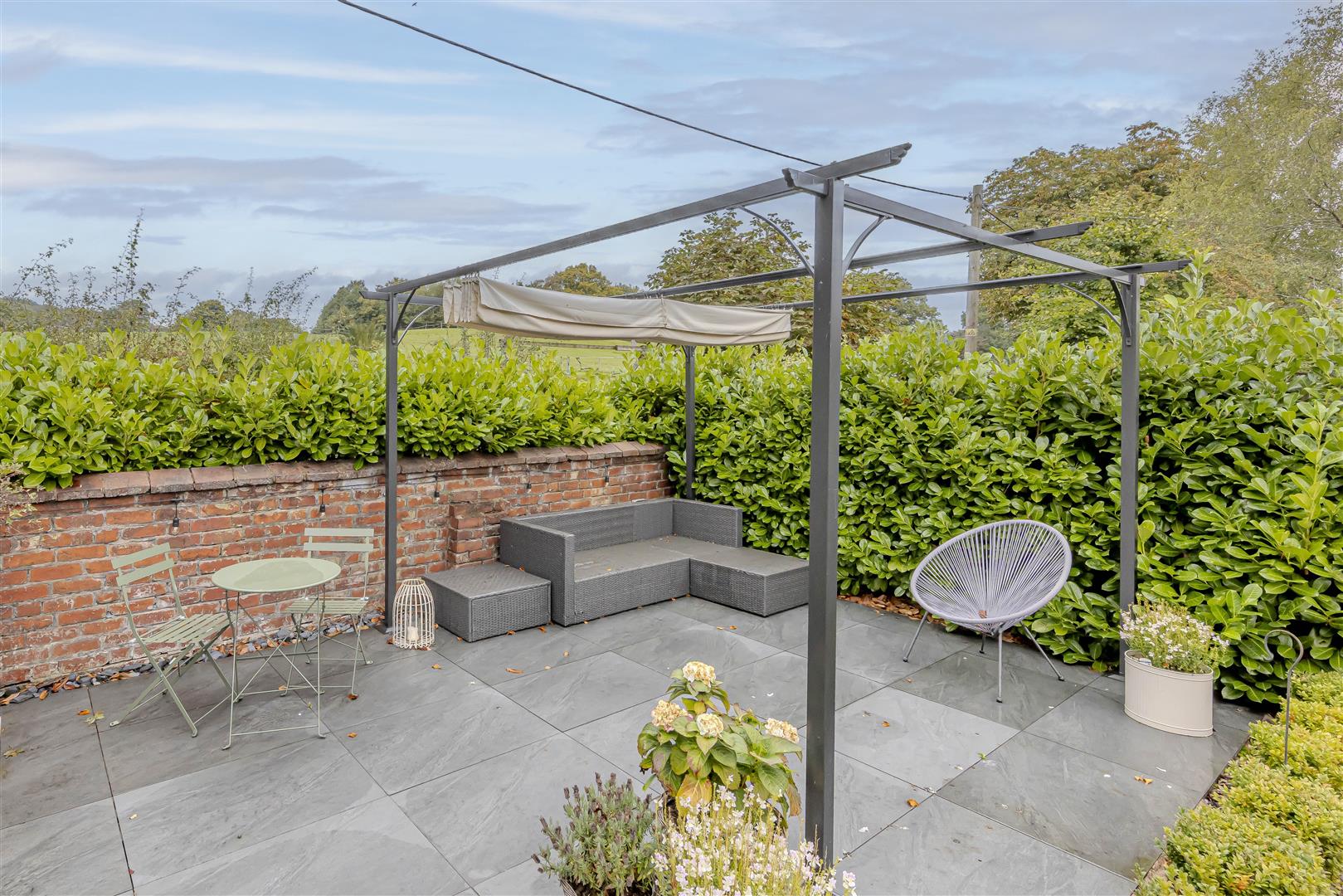 Externally, the property continues to impress. A relatively private frontage offers off-road parking and scenic views across fields. The beautifully landscaped rear garden is accessed via a charming gateway and features a lawned area with mature borders, a paved pathway, and steps leading to a delightful patio area with pergola—perfect for entertaining in the warmer months. Beyond the garden, the property backs onto open fields, providing a peaceful and picturesque backdrop.