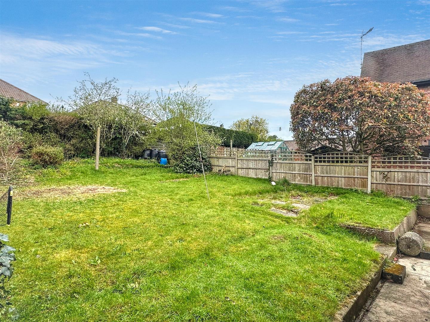 The property benefits from a good-sized rear garden, mainly laid to lawn with a patio area positioned directly to the rear, ideal for outdoor seating. The garden is enclosed with fenced boundaries and offers access to the garage, providing a practical and usable outdoor space.