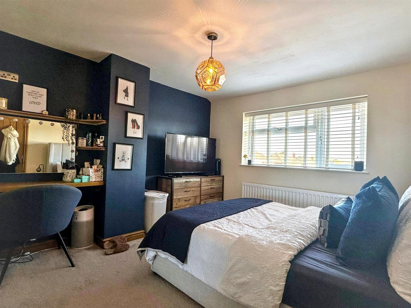 Fitted carpet. Radiator. Fitted with a range of built in wardrobes. uPVC bay window to the front aspect. Ceiling light.