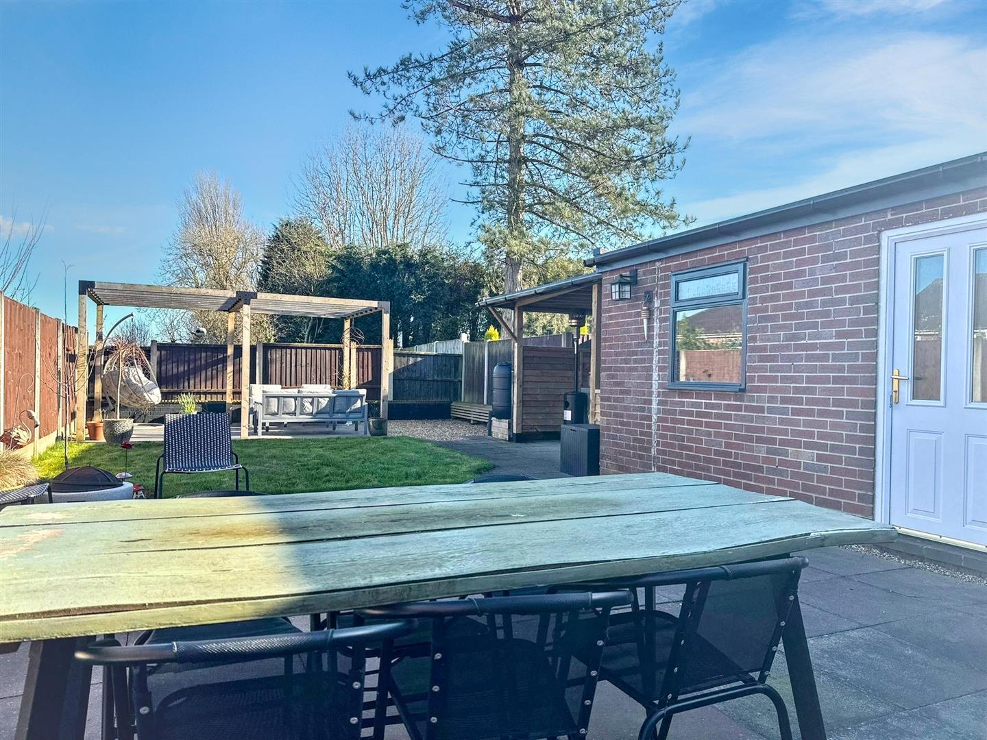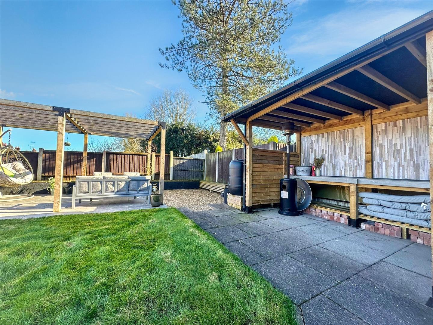 The rear garden provides a fantastic space for outdoor dining and entertaining. Fully enclosed, it offers a safe and secure environment for children and pets to enjoy. Two generous paved seating areas sit alongside a well-maintained lawn, creating versatile spaces for relaxation and social gatherings. One of the seating areas is positioned beneath a beautiful timber pergola, with a superb covered BBQ area to the side—perfect for hosting and enjoying al fresco living year-round.