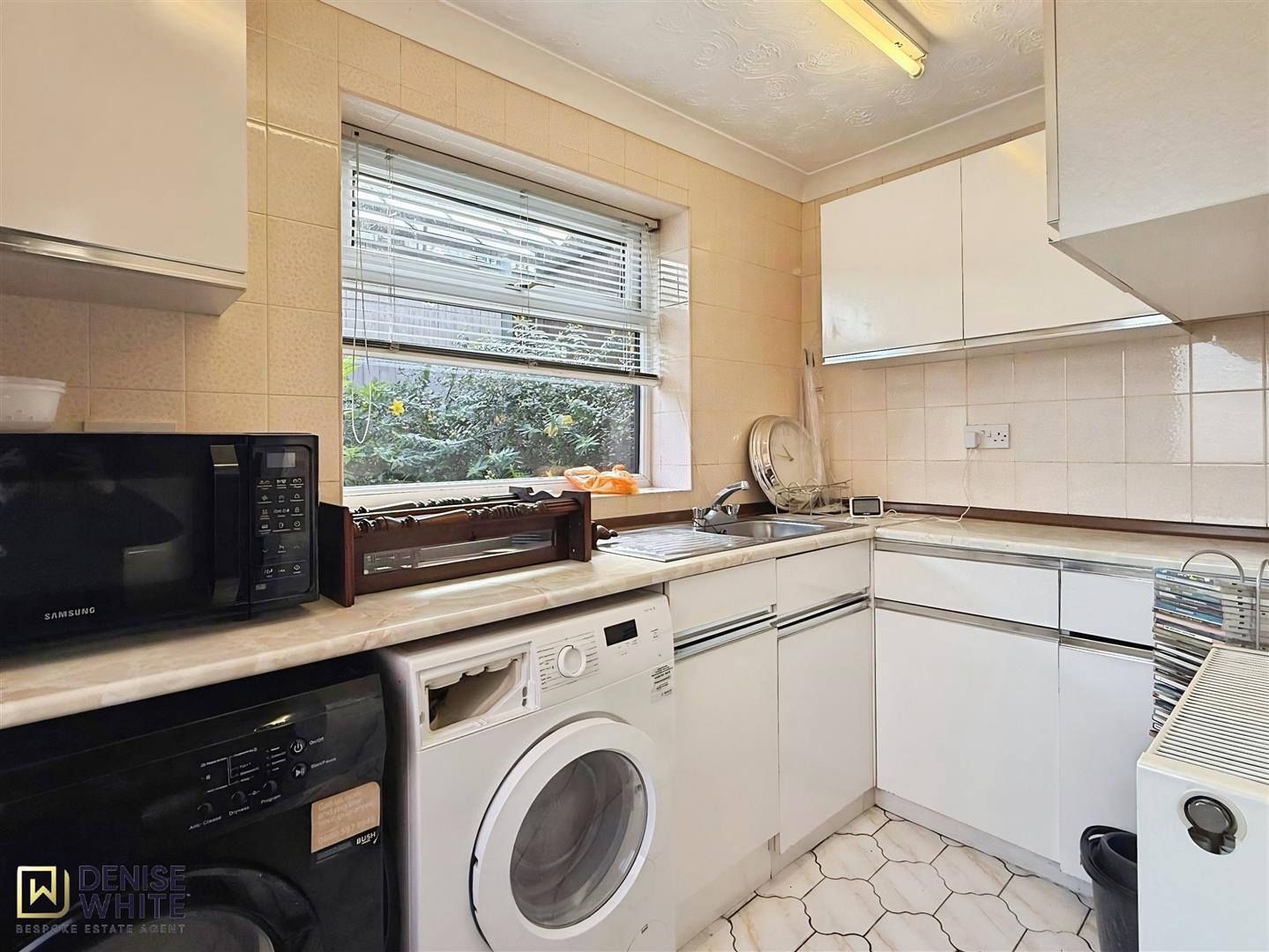 Tiled flooring. Wall mounted radiator. Range wall and base units. Plumbing for washing machine. Drainer style sink unit. UPVC double glazed window to the rear aspect. Access to garage. Access to outside. Ceiling light.