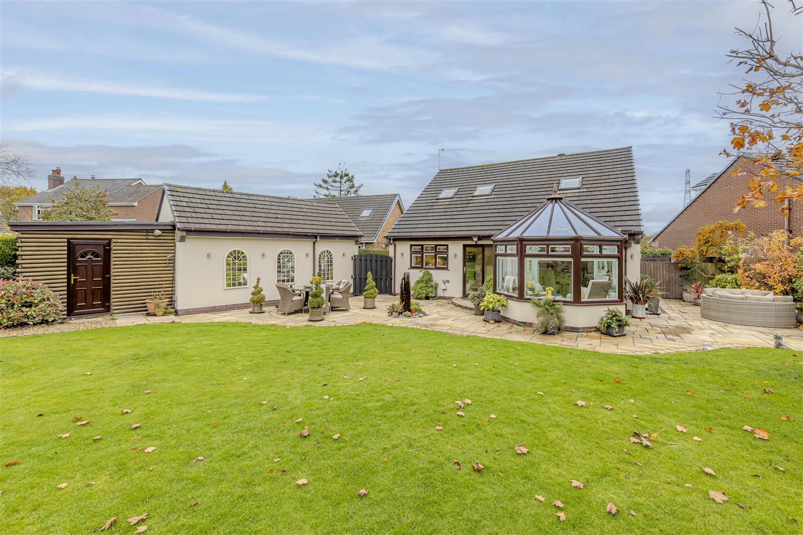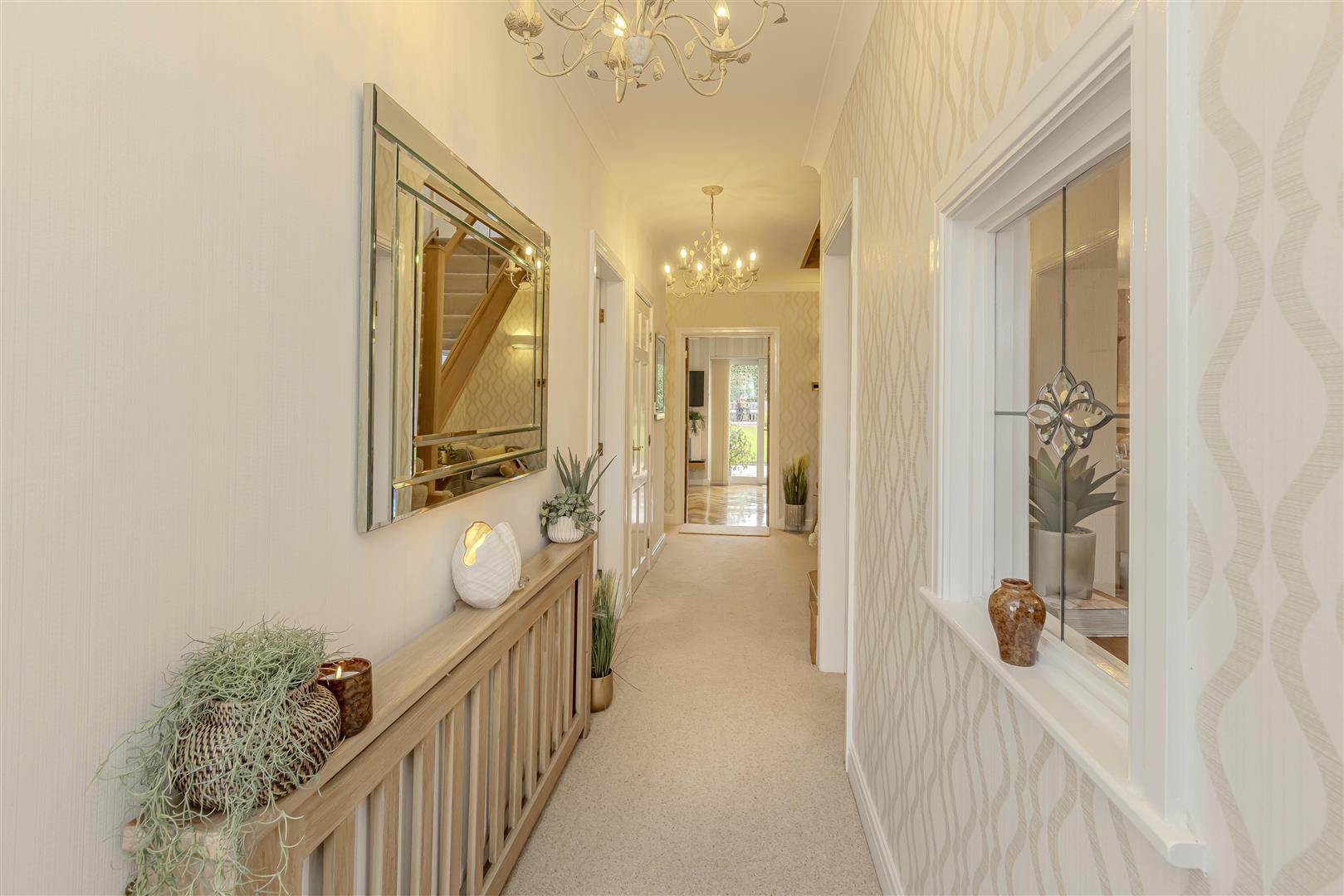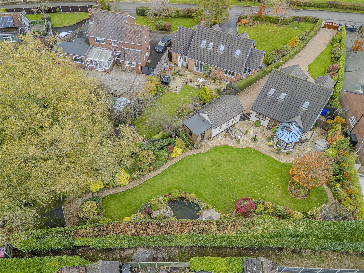This property is set on an impressive plot that has been beautifully landscaped by the current owners. A long cobblestone driveway, secured by electric gates and complemented by security lighting, leads up to the property, providing ample parking space and access to the detached garage. The driveway is bordered by neatly maintained hedges, extensive flower beds, and lush lawn areas. The detached garage has an electric up and over door provides ample space to house a car and has an additional utility style area at the rear with wall and base units, tiled flooring and storage space.