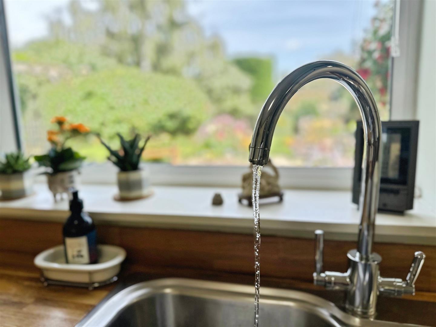 Fitted with a range of wall and base units with solid oak work surfaces over incorporating a one and a half bowl sink and drainer unit with mixer tap. Integrated “Neff” five ring gas hob with extractor hood over, dishwasher, microwave and AEG oven with steam function. Laminate tile flooring. Radiator. Plumbing for automatic washing machine. Space for fridge freezer. Understairs storage cupboard. Two uPVC windows to the rear aspect. uPVC door leading to the rear garden. Two ceiling lights.