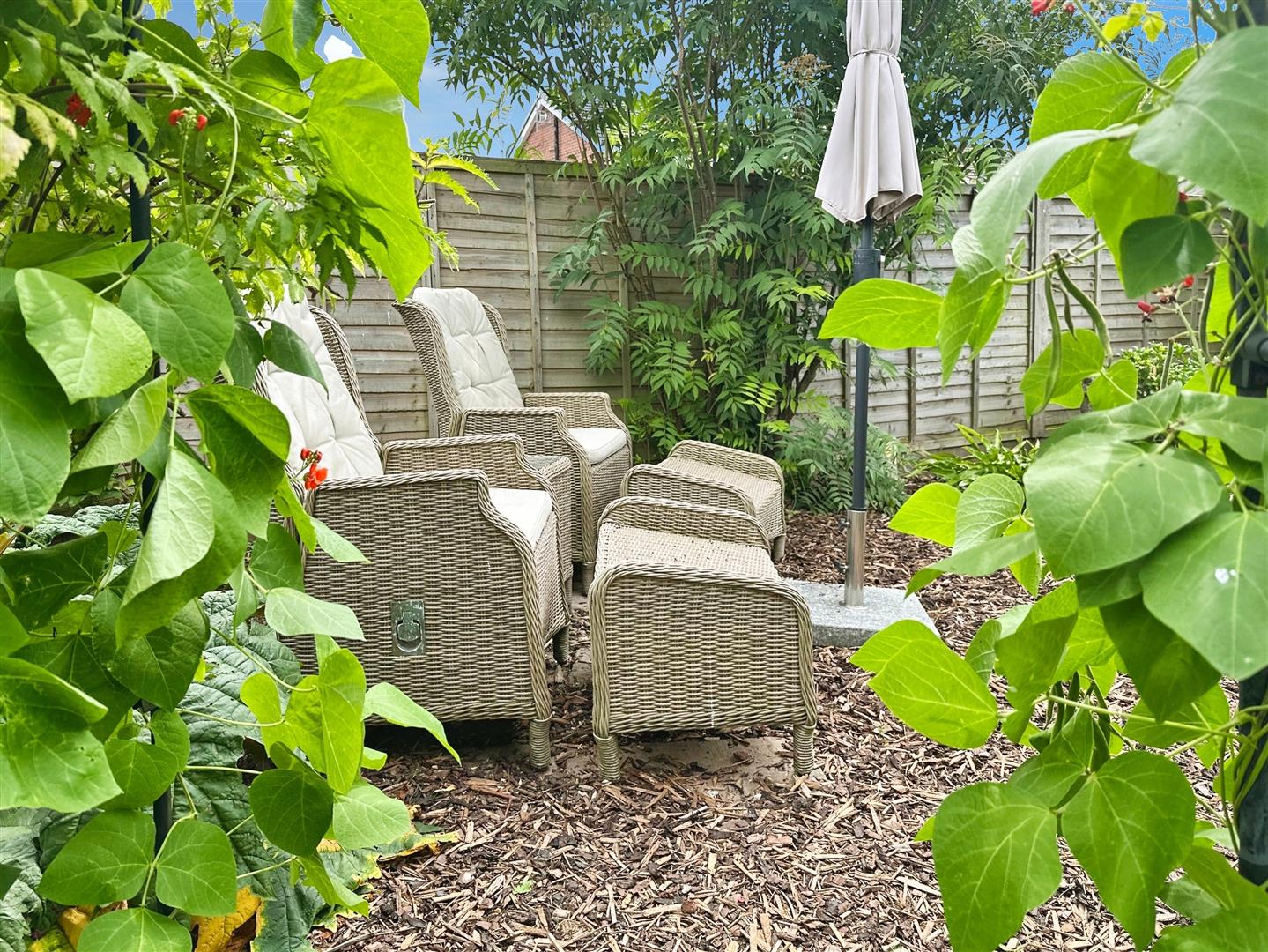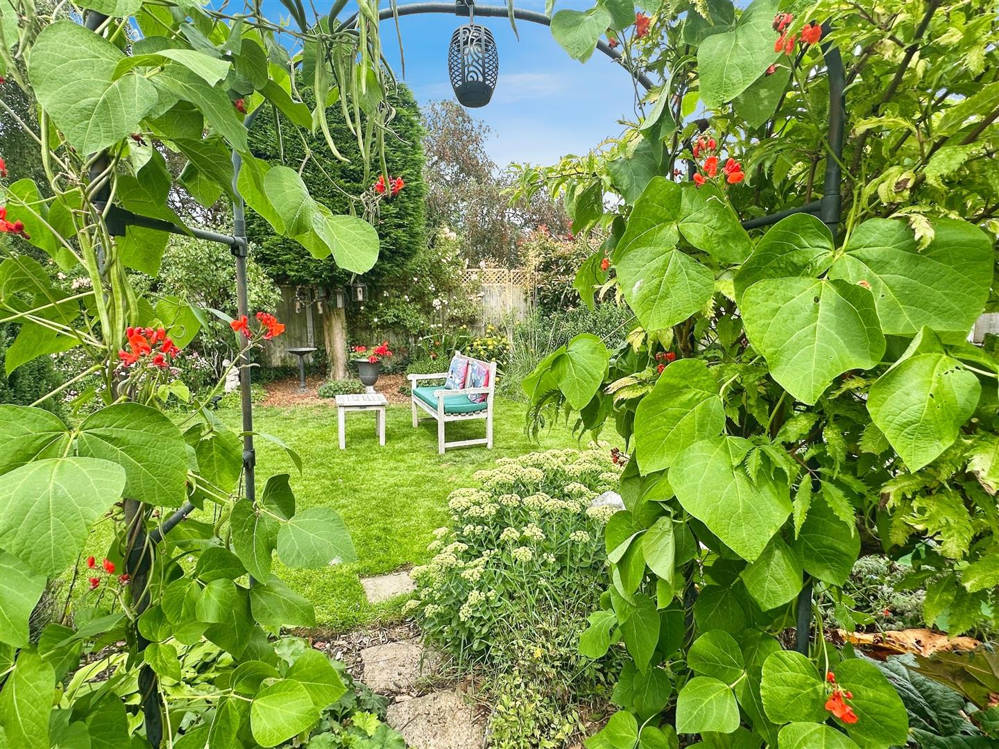 Tucked away amongst mature trees and shrubs, secluded seating areas offer quiet, sheltered spots to relax with a book or morning coffee. Amongst the flower beds, a small rockery complete with a gently cascading waterfall, adds a soothing soundtrack of trickling water, creating an atmosphere of peace and tranquillity throughout the garden.
