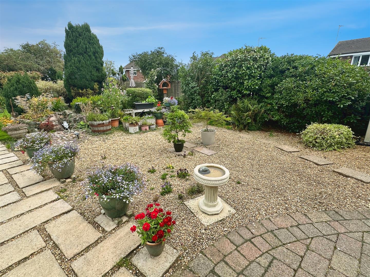 To the rear of the property you will find a generously sized garden; a true haven, thoughtfully landscaped to offer both beauty and practicality. A smart block-paved patio provides the perfect space for outdoor dining and entertaining, while winding pathways meander through well-stocked, mature flower beds, bursting with seasonal colour. Beyond lies a good-sized lawn, ideal for children to play or for simply enjoying the sunshine.