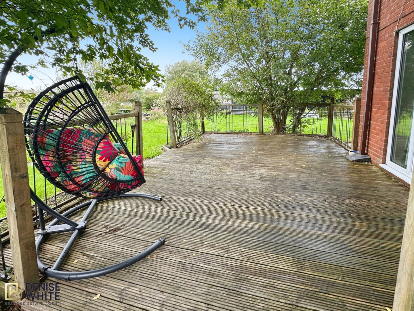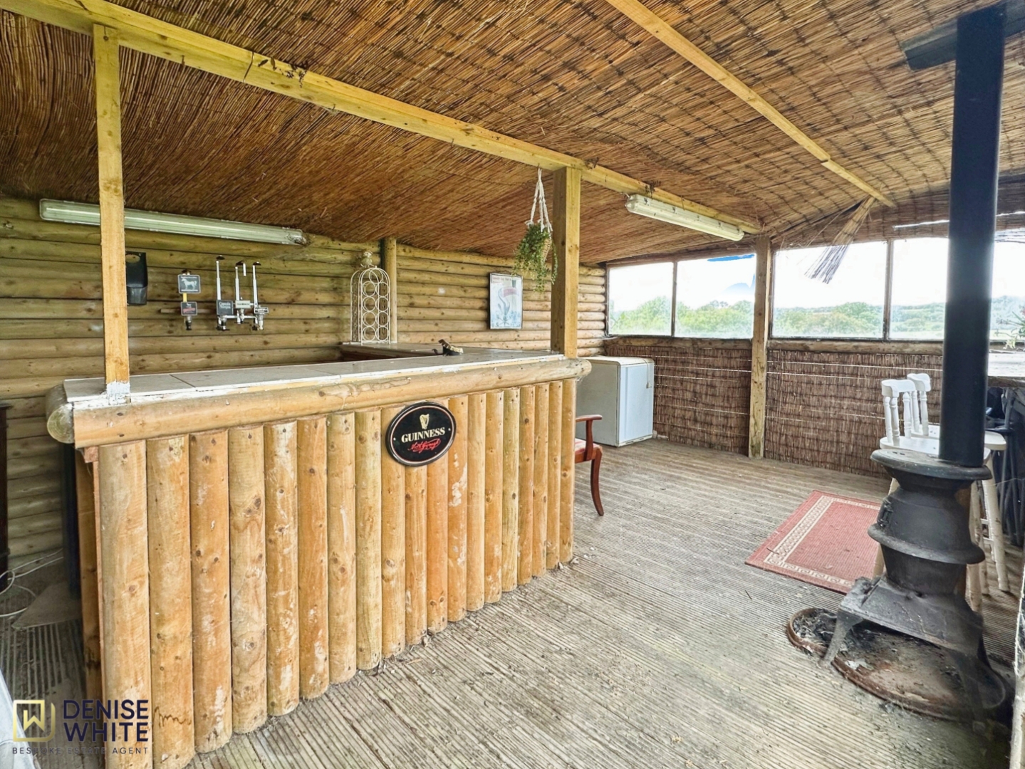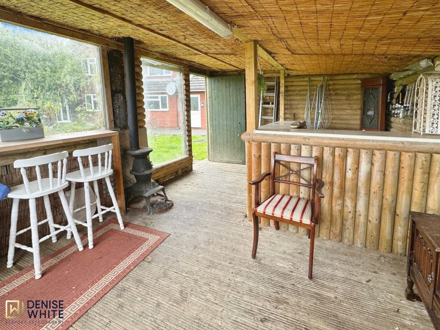 The gardens and land at Green Acres are a true highlight, combining private outdoor space with smallholding facilities. Wrap-around gardens frame the property to the side and rear, offering a mix of paved and decked seating areas that are perfect for entertaining and alfresco dining. The lawn features a charming nature pond, while a timber-built log store and outdoor bar add both character and practicality.