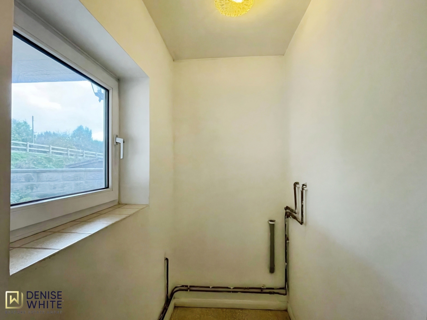 Tiled effect flooring. Plumbing for washing machine. uPVC double glazed window to the front aspect. Ceiling light.
