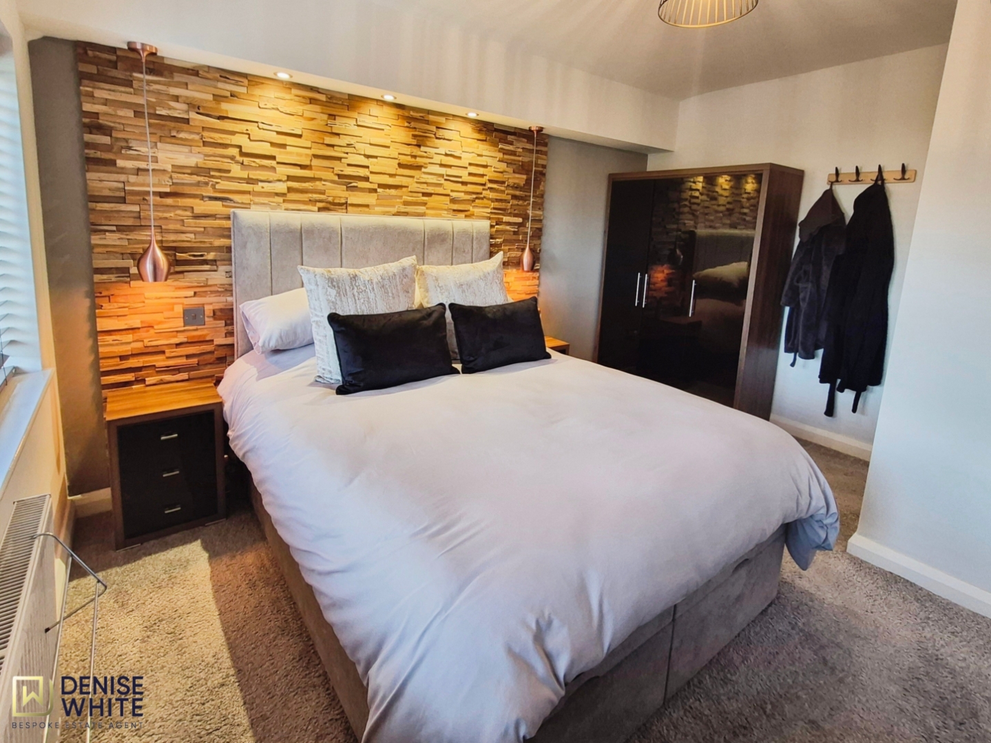 Carpet. Radiator. Two uPVC windows to the rear aspect. Feature wood panelled wall. Ceiling light and spotlights.