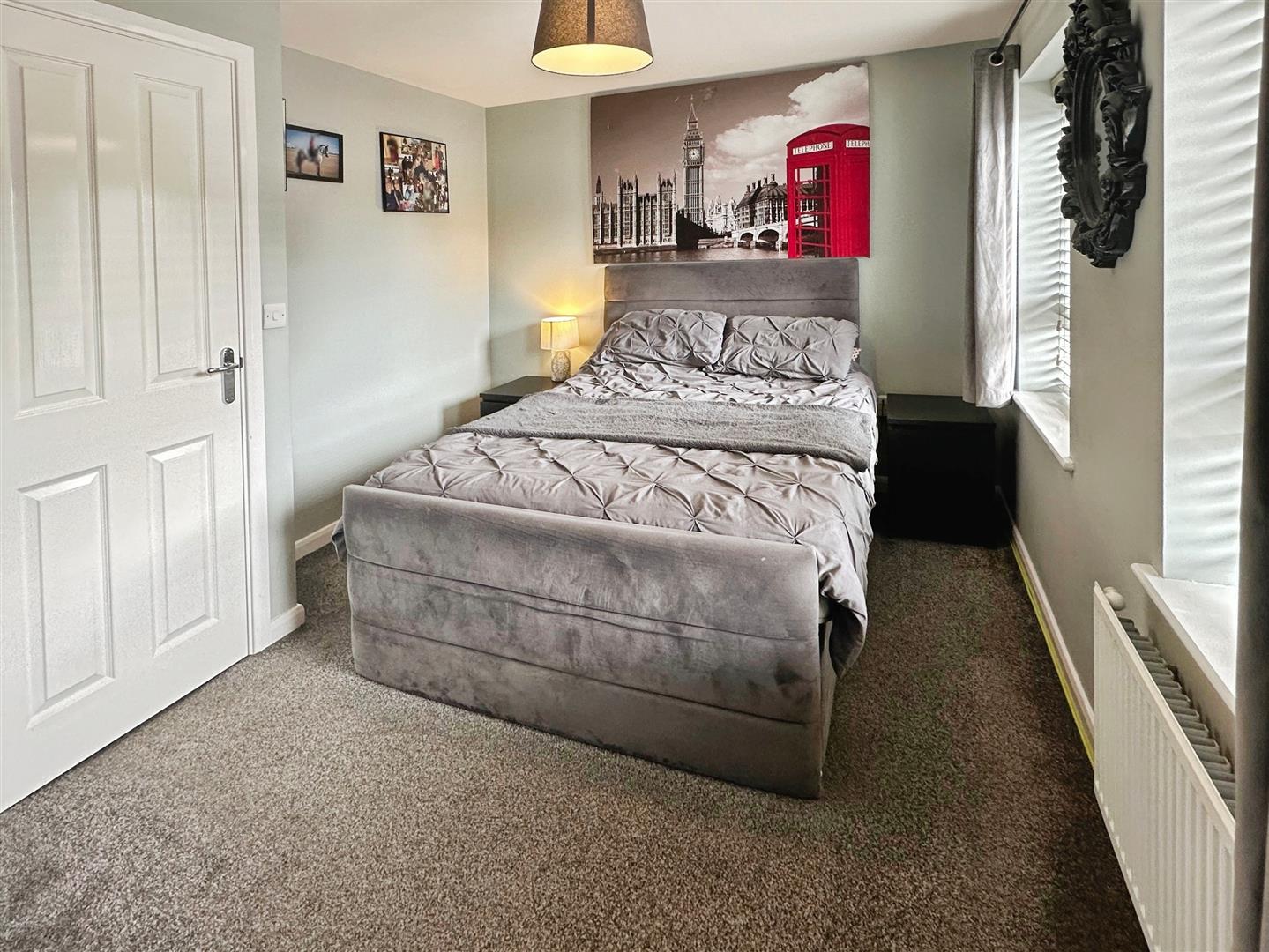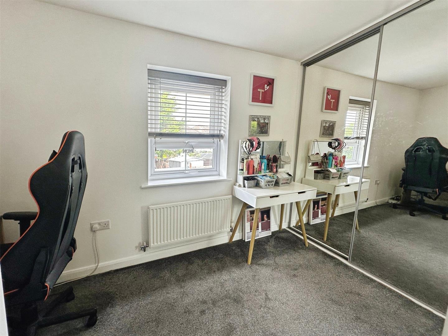 Carpet. Radiator. Fitted with a range of mirror fronted wardrobes. Storage cupboard off. uPVC window to the rear aspect. Ceiling light. Loft access.