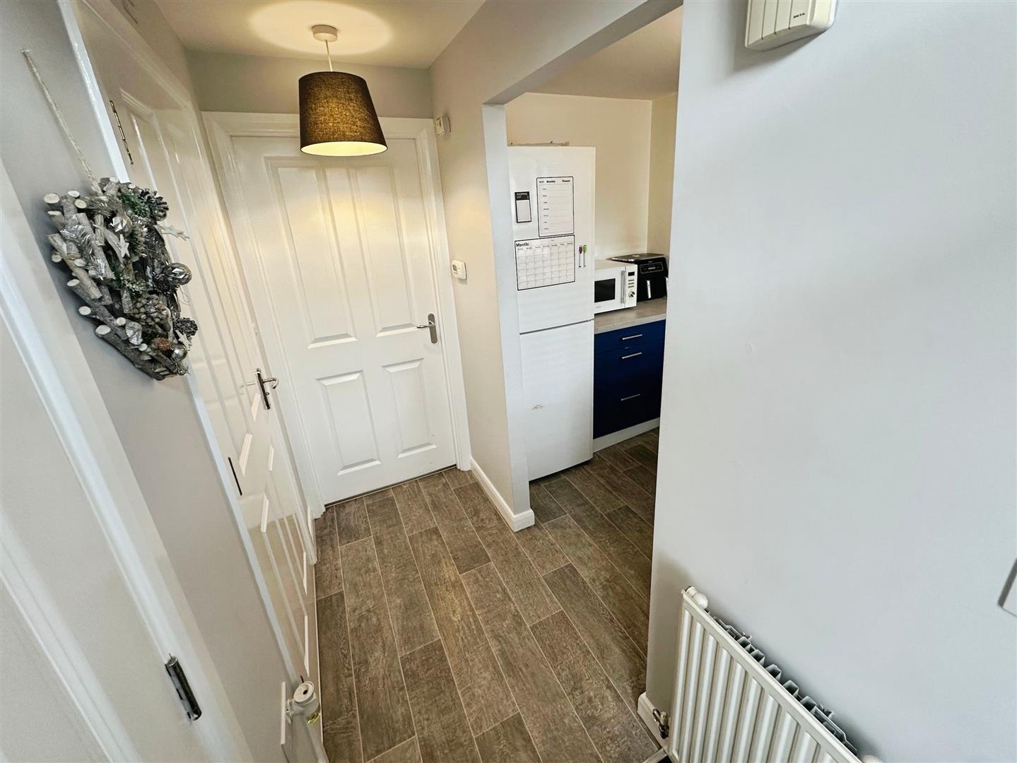 Composite entrance door to the front aspect. Part carpeted and part vinyl flooring. Radiator. Ceiling light. Opening to the Kitchen. Utility cupboard off housing the gas central heating boiler. Doors leading into the downstairs WC and Lounge.