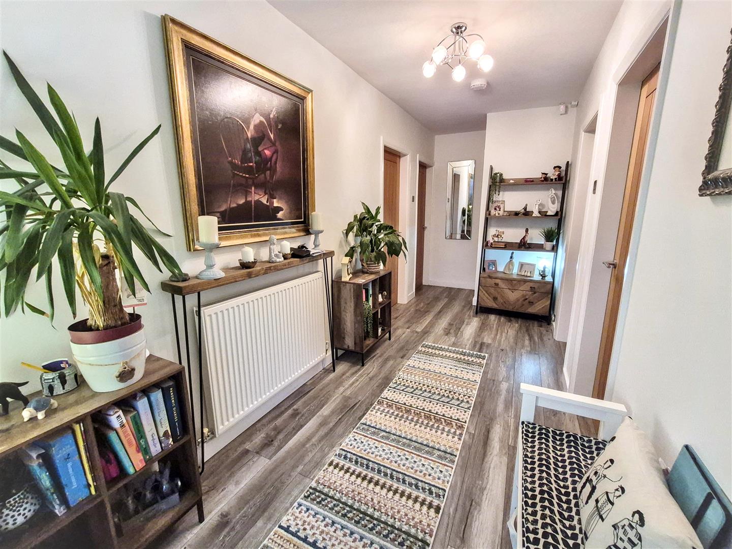 Double uPVC entrance doors to the front aspect. Laminate flooring. Ceiling light. uPVC door leading into: –