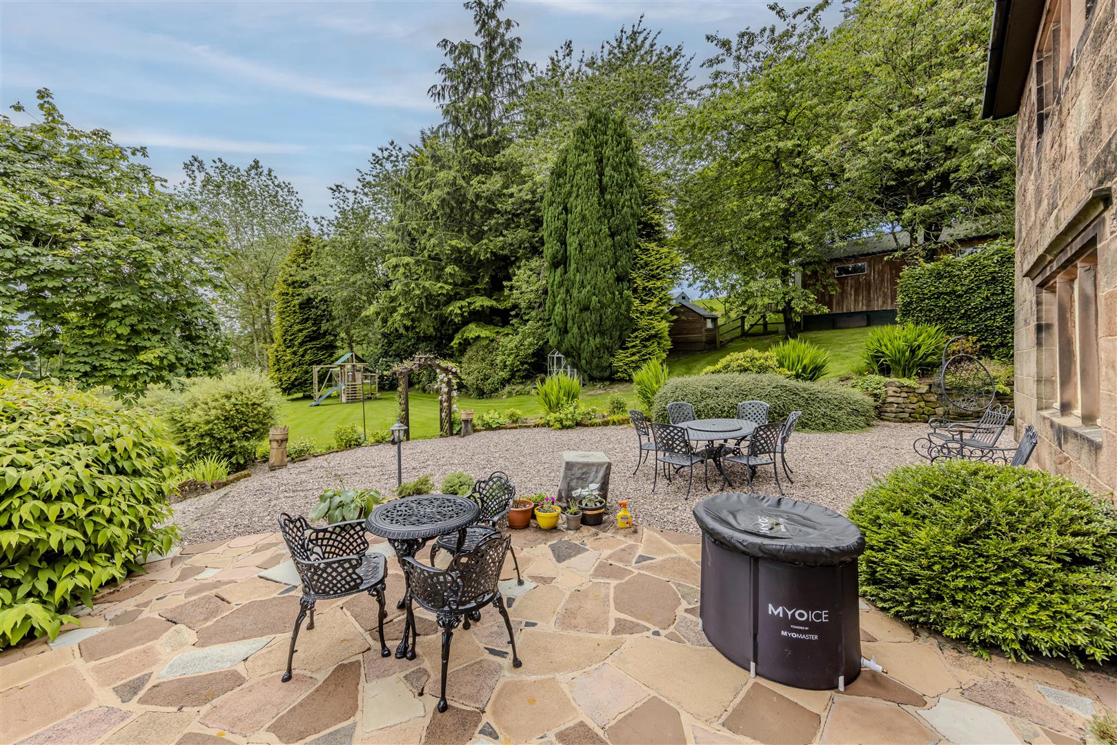 The immaculately maintained gardens envelop the property, offering a breath-taking backdrop of the picturesque countryside. A delightful seating patio area, conveniently accessible from the house, provides the perfect spot to relax, read, socialise, or tend to the flower and shrub borders. From this vantage point, one can admire the expansive gardens and surrounding land, commanding an impressive view. The gardens themselves feature primarily lush lawns, interspersed with a charming wooded area and a paddock. Adding to the allureof the property is a fascinating historical Icehouse nestled within the gardens.