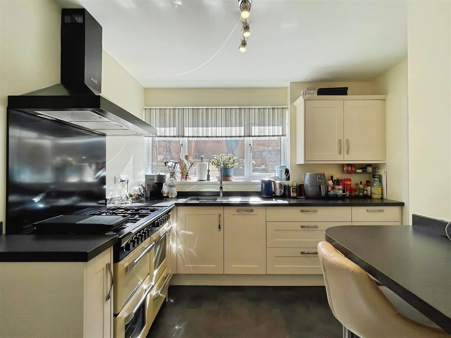 The neutral Shaker-style kitchen overlooks the rear garden and benefits from a built-in breakfast bar, ideal for casual dining or morning coffee. A practical utility room provides further storage and space for appliances, while the generous separate dining room offers versatility—ideal as a formal dining space, a playroom, or a comfortable home office.