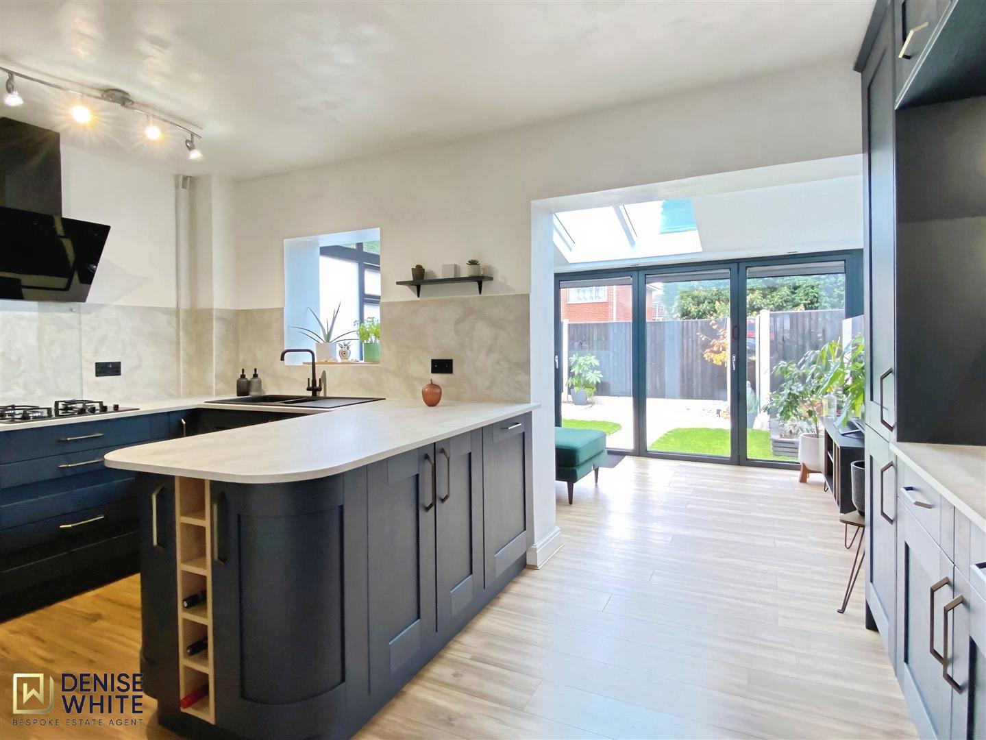 Laminate flooring. Wall mounted radiator. Bifold doors leading to outside. Skylight windows. Inset Spotlights.
