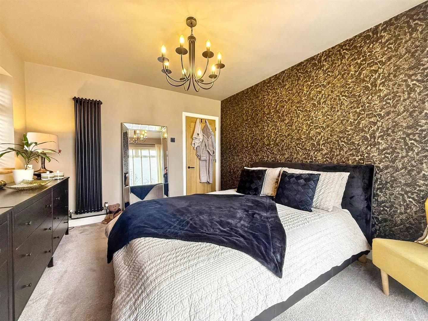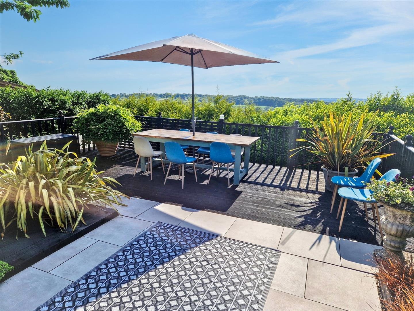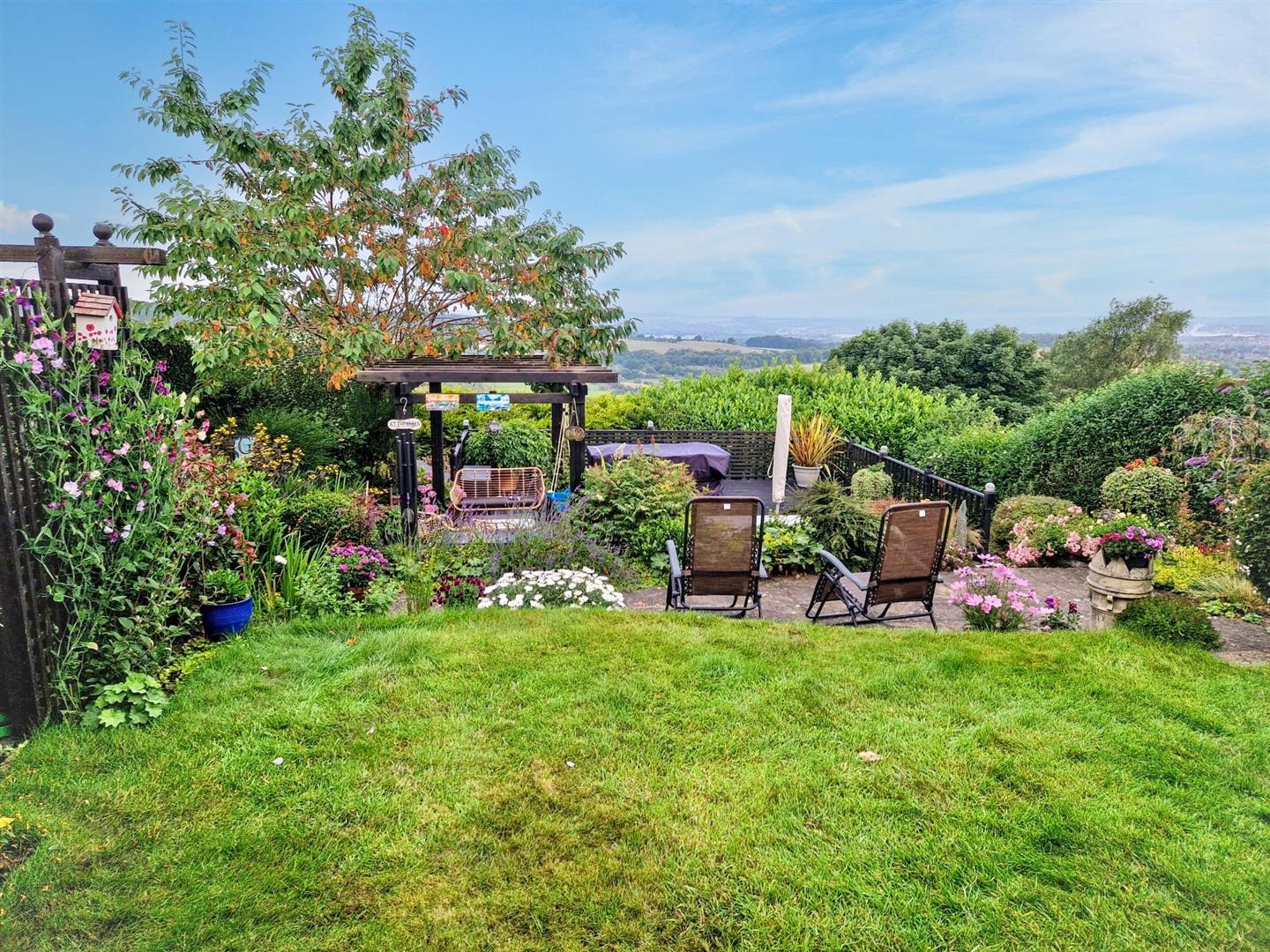The rear garden is undoubtedly a standout feature, having been beautifully landscaped to create a tranquil and highly attractive outdoor space. A manicured lawn is bordered by mature shrubs and planting, while a paved pathway gently winds through the garden to reach both paved and decked seating areas. From here, the property enjoys truly stunning far-reaching views across the surrounding city and countryside beyond.