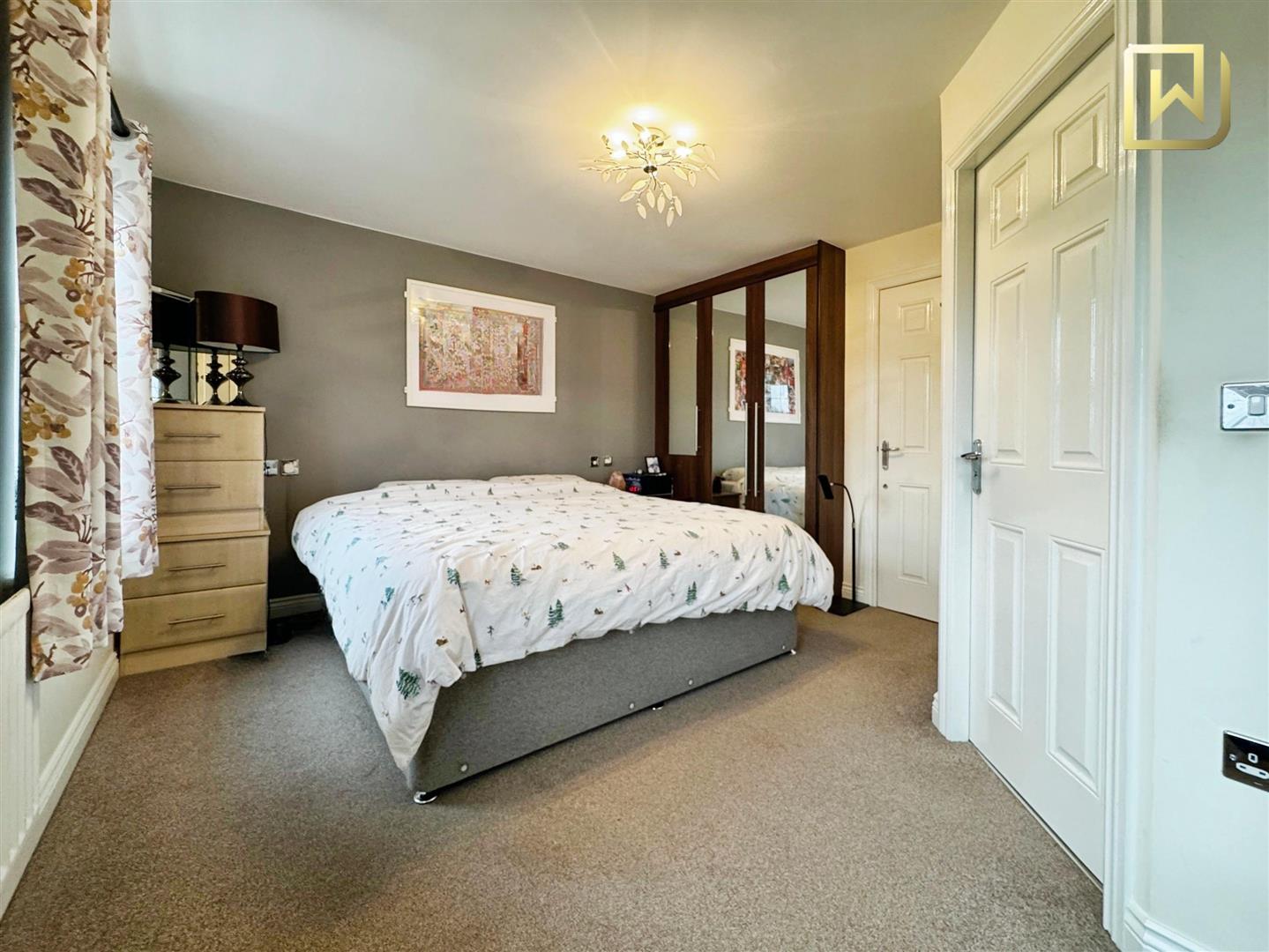 Fitted carpet. Wall mounted radiator. UPVC double glazed windows to the front aspect. Ceiling light. Access into En Suite.