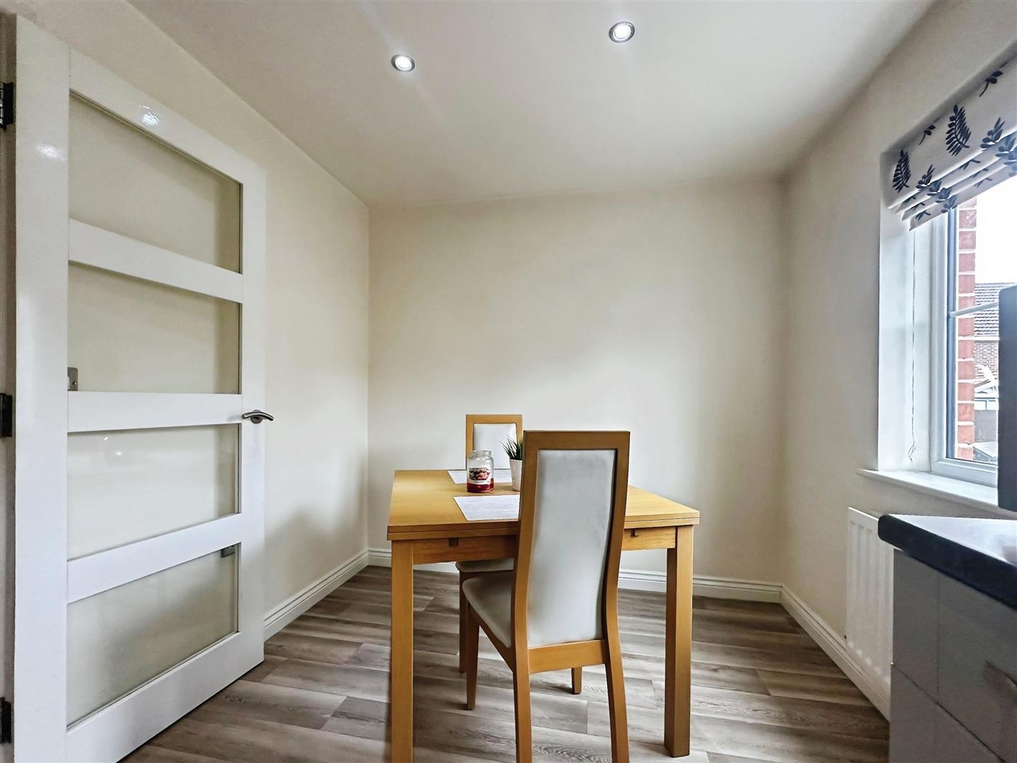 Wooden style flooring. Wall mounted radiator. UPVC double glazed window to the front aspect. Inset spotlights.
