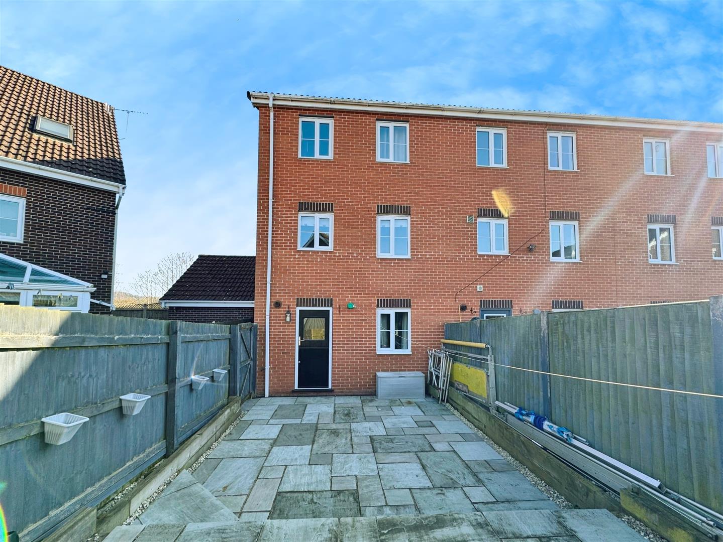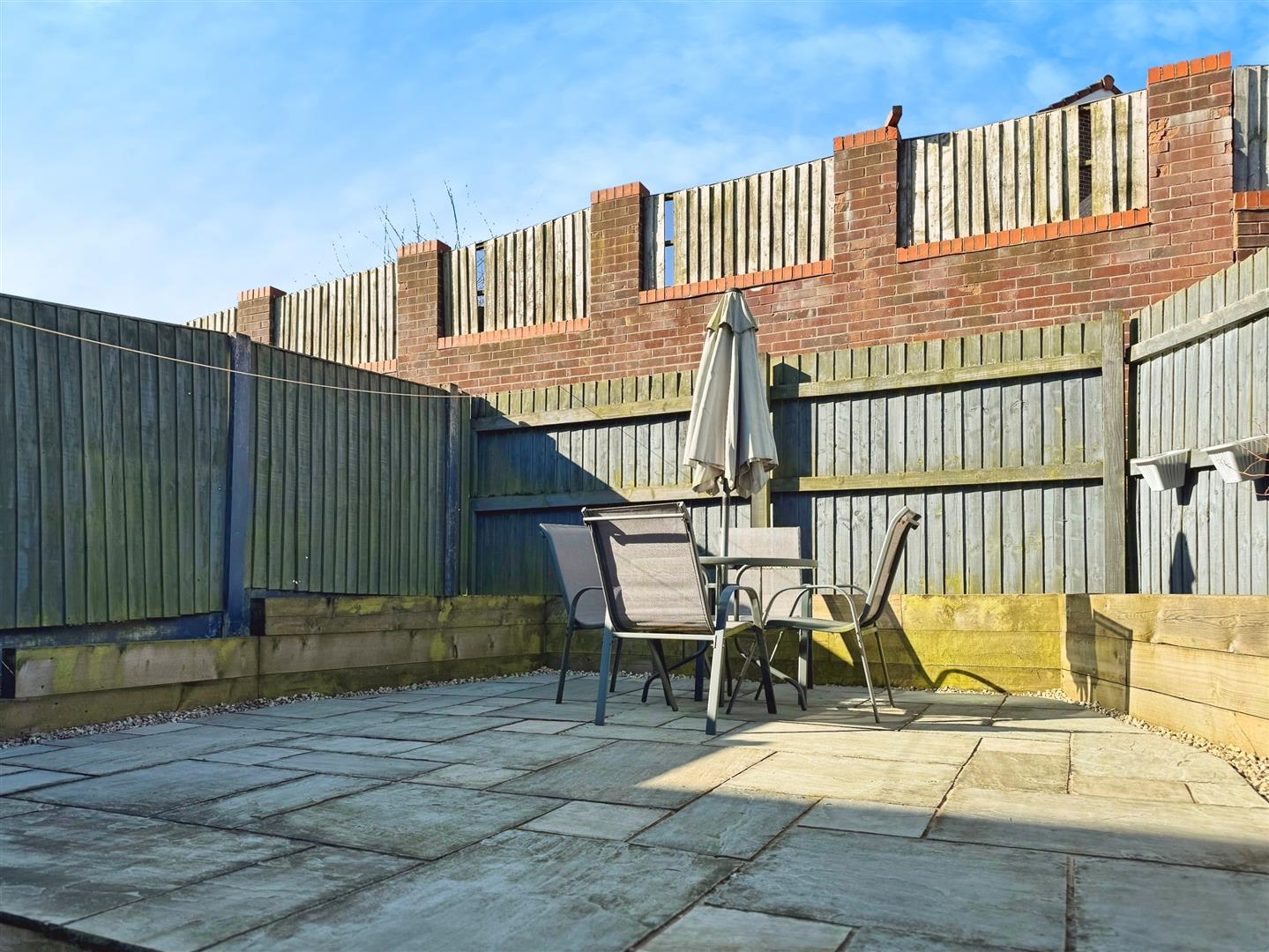 To the rear of the home, a low-maintenance paved garden awaits. This enclosed space provides a safe haven for children and pets to roam freely, making it an ideal spot for outdoor relaxation.