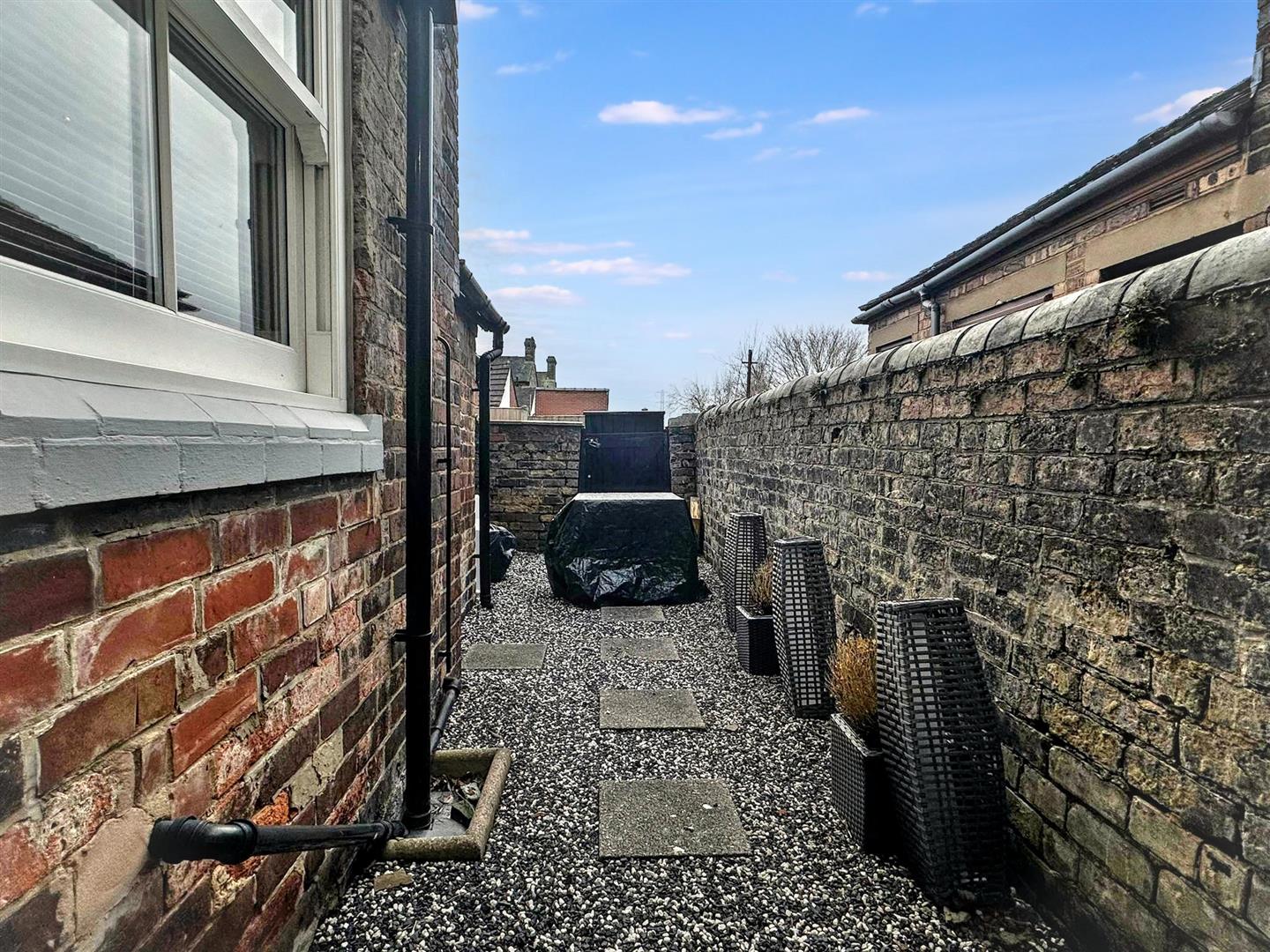 To the rear of the property there is a low maintenance yard, ideal for outdoor seating and dining, with gated access to the rear alleyway. There is also a useful brick built store, and external utility room.