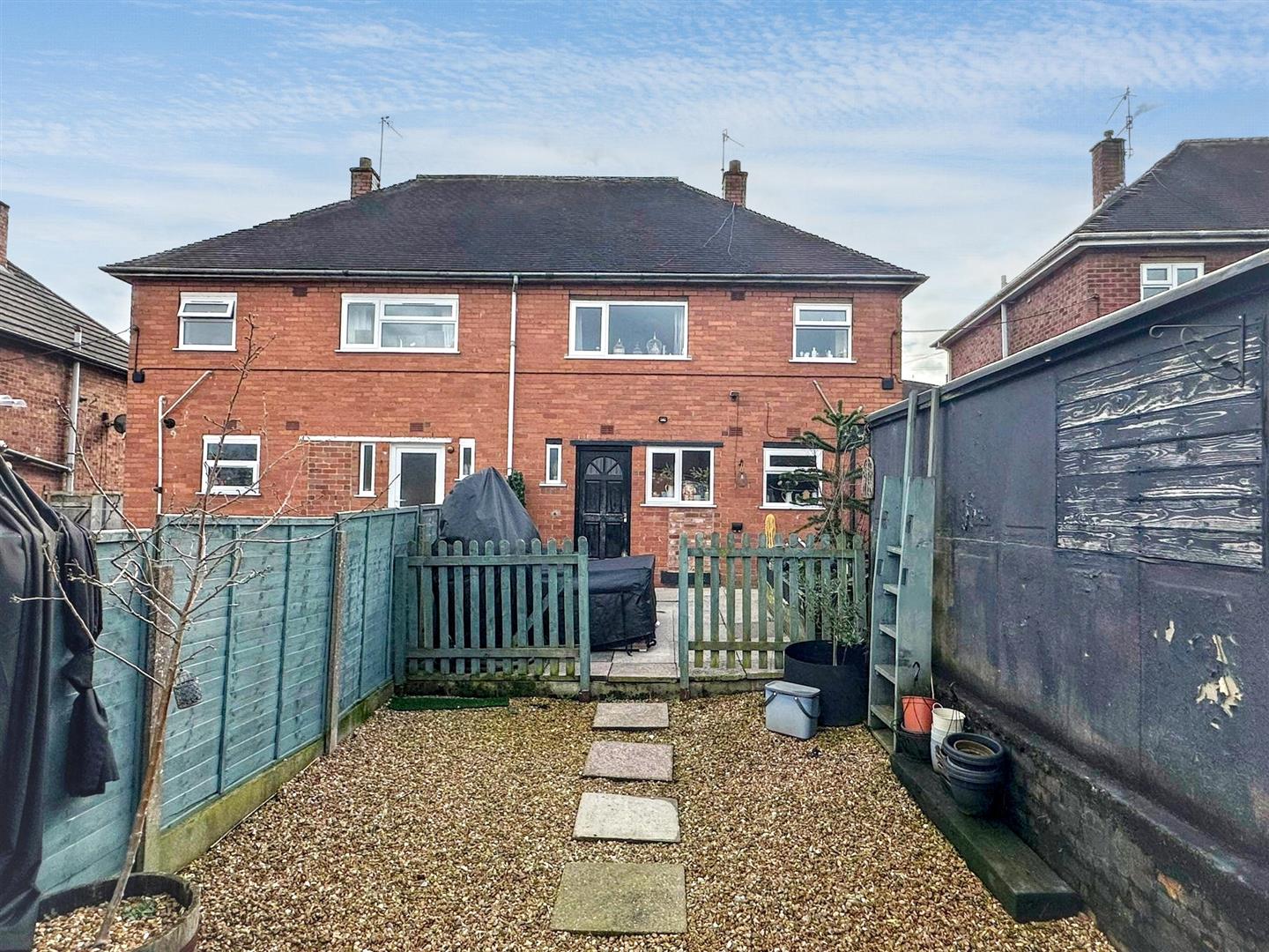 Externally, the rear garden includes an enclosed courtyard area along with a small section of lawn, offering low-maintenance outdoor space.