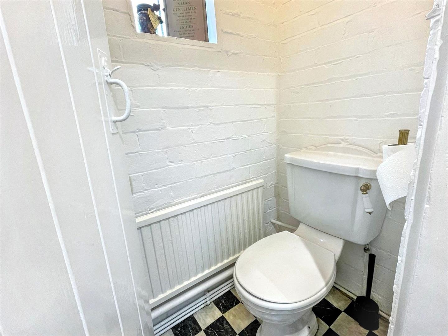 Continued vinyl flooring. Low level WC. Wash hand basin. Wall mounted radiator. Obscured uPVC double glazed window to the rear aspect. Ceiling light.