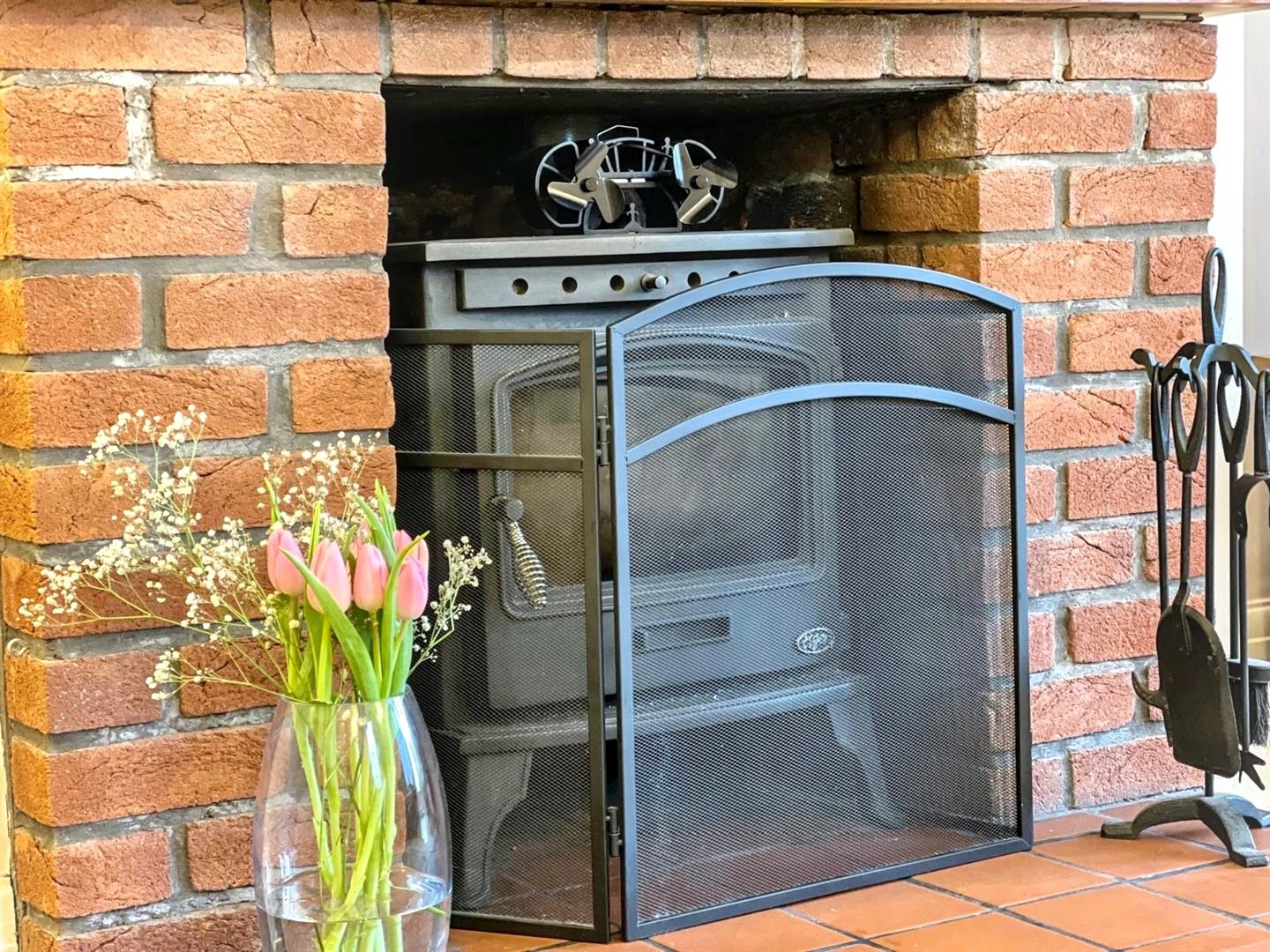 To the front of the property sits a well-proportioned dining room, featuring an open fire and an elegant bay window with stained-glass detailing—perfect for both everyday family meals and entertaining. To the rear, the spacious living room enjoys views across the garden beyond and opens via French doors onto a large rear patio. A cosy log burner with brick surround creates a warm and inviting atmosphere, making the space enjoyable all year round.