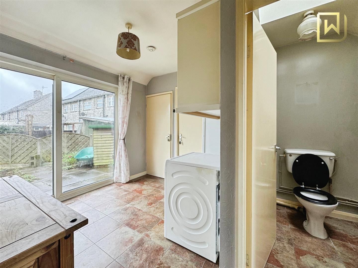 Tiled flooring. Wall mounted radiator. Range of wall and base units. Drainer style sink unit. Space for cooker. Space for fridge freezer. UPVC double glazed window to the rear aspect. Access into dining area. Access into utility. Access into entrance hallway. Ceiling lights.
