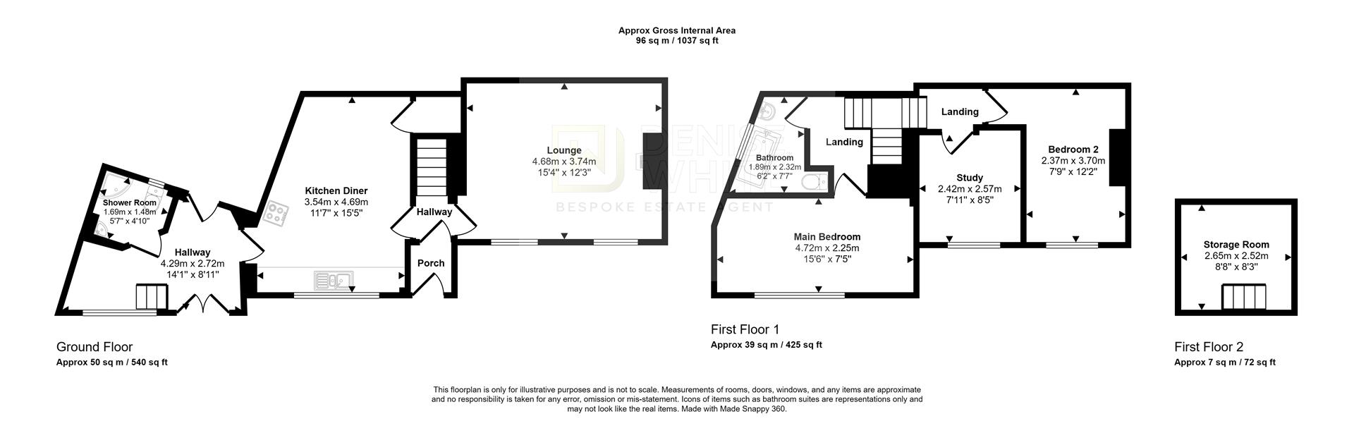 Please note that all areas, measurements and distances given in these particulars are approximate and rounded. The text, photographs and floor plans are for general guidance only. Denise White Estate Agents has not tested any services, appliances or specific fittings — prospective purchasers are advised to inspect the property themselves. All fixtures, fittings and furniture not specifically itemised within these particulars are deemed removable by the vendor.